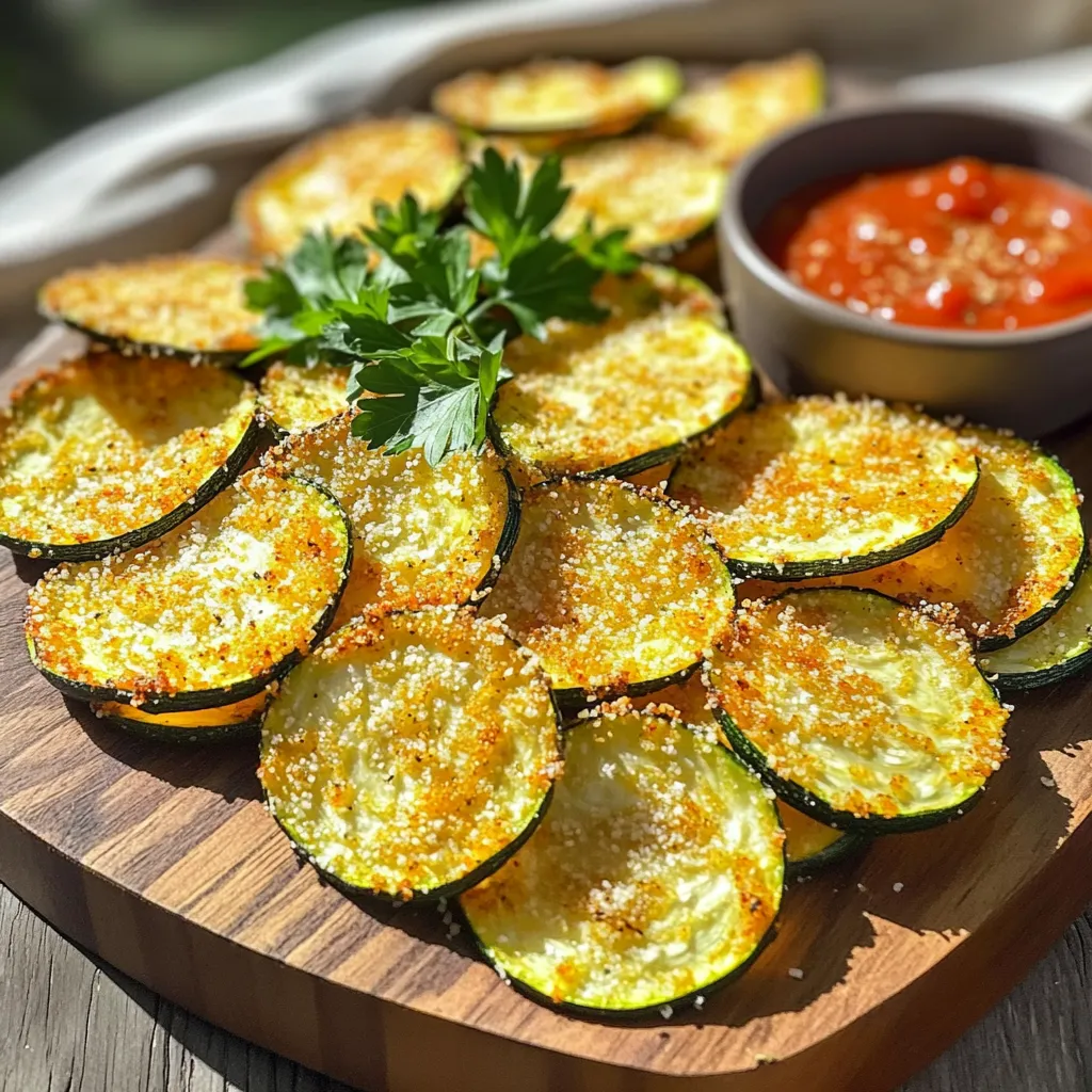Pair your zucchini chips with dips like marinara sauce or ranch dressing for a tasty combo. For a fun look, serve the chips on a big platter. Add a small bowl of your dip in the center. Garnish with fresh parsley to make it pop!