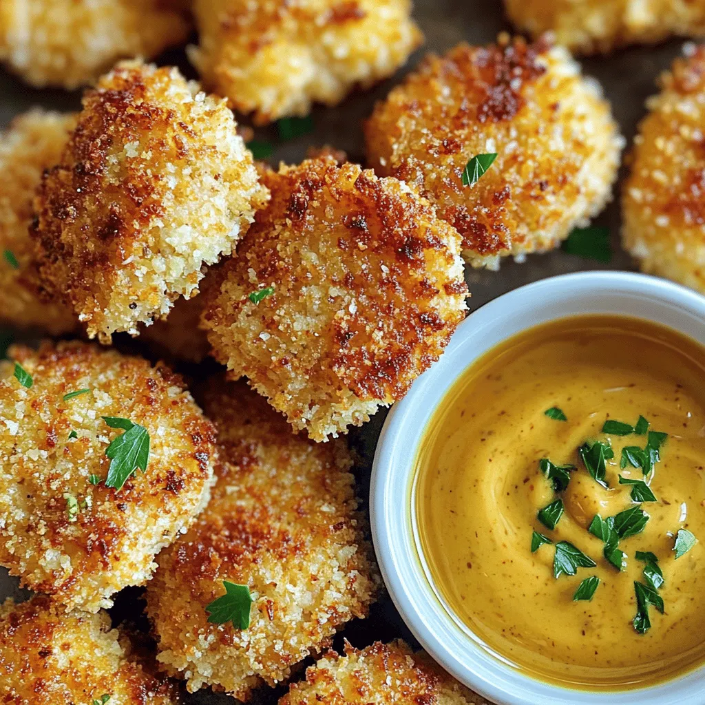 In another bowl, mix together 1/2 cup of breadcrumbs, 1/4 cup of grated Parmesan cheese, 1 teaspoon of garlic powder, and 1/2 teaspoon of onion powder. Add salt and pepper to taste. This will create a flavorful coating for your chicken. Take the marinated chicken nuggets and let any extra marinade drip off. Then, dredge each piece in the breadcrumb mixture. Make sure they are evenly coated for the best crunch.
