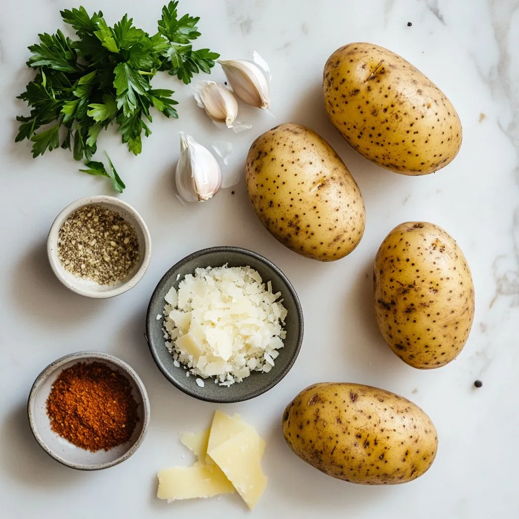 To make baked garlic Parmesan potato wedges, you need the right ingredients. Start with russet potatoes. They are perfect for this dish due to their starchy texture. The olive oil helps to crisp the wedges in the oven. The minced garlic adds a strong flavor that everyone loves. Lastly, the grated Parmesan cheese gives the wedges a rich, cheesy taste.