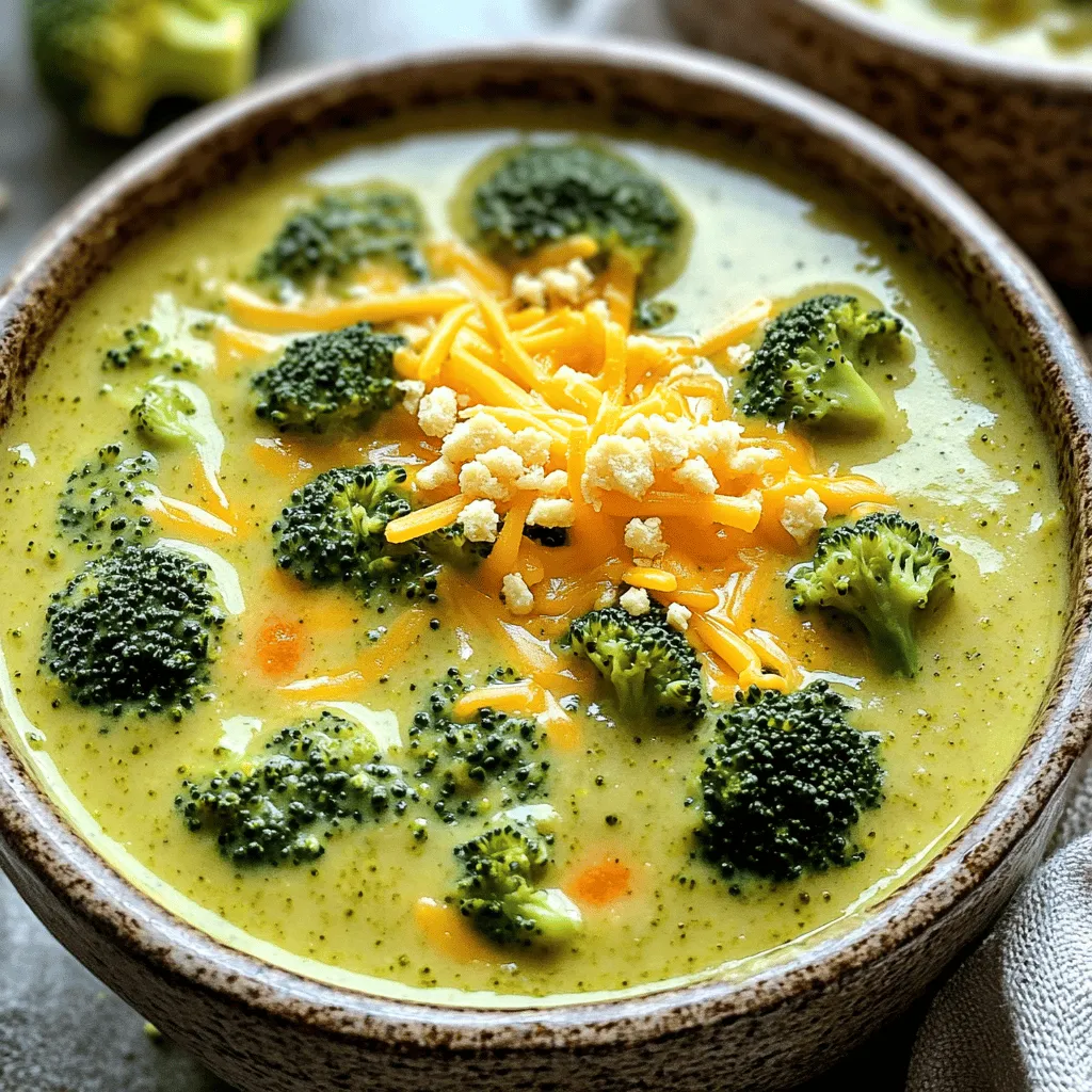 The cheese makes this soup shine. I recommend using sharp cheddar cheese for a strong flavor. Its taste pairs well with broccoli and adds depth. You can also try a mix of cheeses. Gruyère is another great choice. It melts well and brings nuttiness. If you want to experiment, add a little Parmesan for an extra kick.