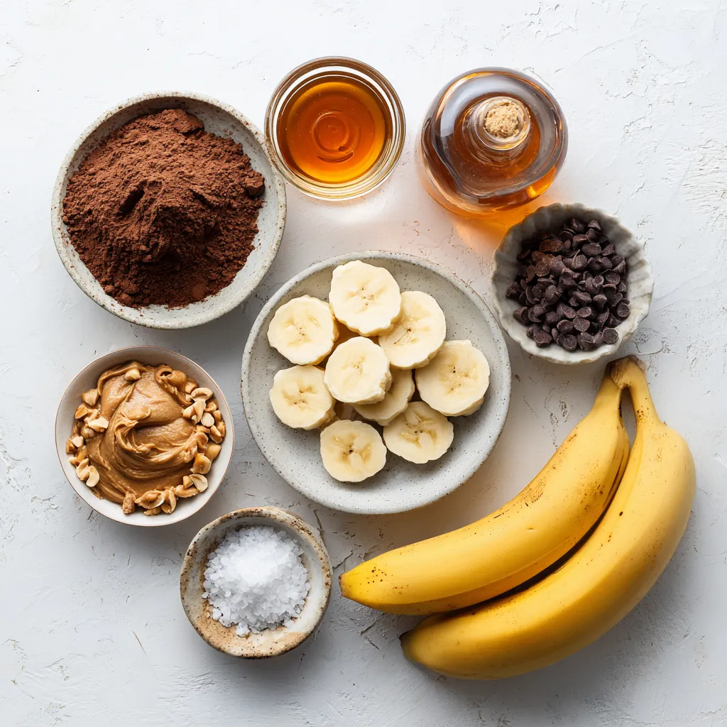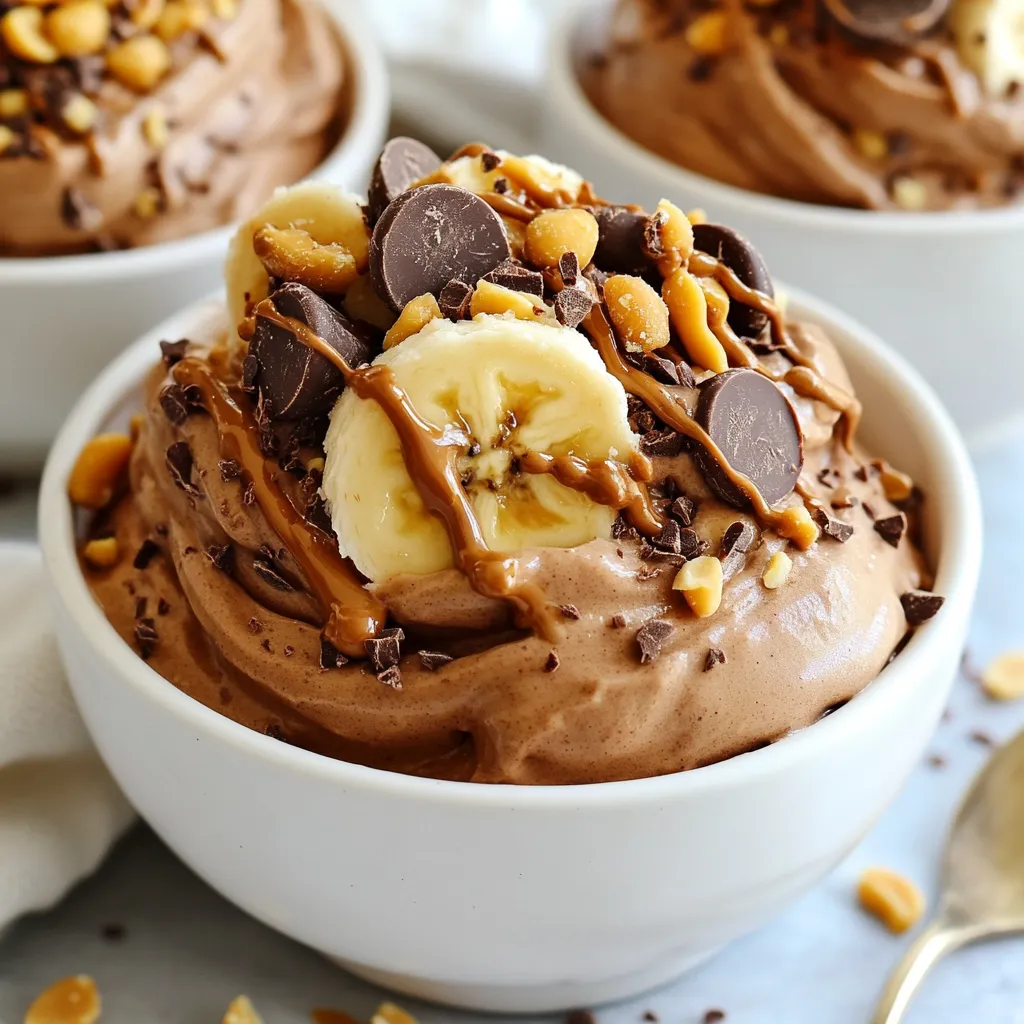 - 4 ripe bananas, sliced and frozen - 2 tablespoons unsweetened cocoa powder - 3 tablespoons creamy peanut butter - 1 tablespoon maple syrup (optional for extra sweetness) - ½ teaspoon vanilla extract - A pinch of sea salt - Chopped peanuts and dark chocolate chips (for topping) - Bananas: They provide natural sweetness and creaminess. Bananas are rich in potassium and fiber. - Cocoa Powder: This adds deep chocolate flavor. It is full of antioxidants and can boost mood. - Creamy Peanut Butter: It gives a rich, nutty taste. Peanut butter is a great source of protein. - Maple Syrup: This optional sweetener offers a unique flavor. It is natural and can enhance the taste. - Vanilla Extract: It adds warmth and depth. Vanilla can improve the overall flavor profile. - Sea Salt: Just a pinch balances the sweetness. It enhances other flavors in the nice cream. - Chopped Peanuts and Dark Chocolate Chips: These toppings provide crunch and richness. They make the dish more enjoyable and fun to eat. - Bananas: Look for organic bananas for better taste and quality. - Cocoa Powder: Brands like Hershey's or Ghirardelli offer great options. - Creamy Peanut Butter: I recommend Jif or Skippy for a smooth texture. - Maple Syrup: Grade A maple syrup from local farms is often the best choice. - Vanilla Extract: Use pure vanilla extract from Nielsen-Massey for the best flavor. - Sea Salt: Any high-quality sea salt will work well for this recipe. - Chopped Peanuts and Dark Chocolate Chips: Planters peanuts and Ghirardelli chocolate chips are excellent options. {{ingredient_image_1}} Start with ripe bananas. Peel them and slice them into small coins. Lay the slices flat on a baking sheet. Freeze these slices for at least two hours. This step is key for creamy nice cream. Once your bananas are frozen, grab a food processor. Add the frozen banana slices to the bowl. Next, add two tablespoons of unsweetened cocoa powder. Then, add three tablespoons of creamy peanut butter. If you like it sweet, include one tablespoon of maple syrup. Add half a teaspoon of vanilla extract and a pinch of sea salt. Turn on the food processor. Start on low speed, then increase it slowly. This helps break down the bananas. Stop to scrape down the sides if needed. Blend until the mixture is smooth, like soft-serve ice cream. Spoon your nice cream into bowls right away. For a fun touch, top with chopped peanuts and dark chocolate chips. These toppings add crunch and flavor. Serve in chilled bowls for a fancy look. You can also drizzle some peanut butter on top for extra flair. Enjoy your tasty treat! To make your nice cream smooth, use frozen bananas. They need to be ripe and sliced. Freeze them for at least two hours. This gives the nice cream its creamy texture. When you blend, start slow. As the bananas break down, increase the speed. Scrape the sides of the bowl as needed for even mixing. If you want a sweeter taste, add maple syrup. Start with one tablespoon. Blend it in and taste. If it still needs more sweetness, add a little more. Remember, the bananas are sweet too. You can also try honey or agave if you prefer. A good food processor is key for making nice cream. It should have enough power to blend frozen bananas smoothly. If you don’t have one, a high-speed blender works too. Chill your serving bowls before adding the nice cream for a nice touch. Pro Tips Use Overripe Bananas: The riper the bananas, the sweeter and creamier your nice cream will be. Look for bananas with plenty of brown spots for the best flavor. Freeze in a Single Layer: When freezing the banana slices, make sure they're spread out in a single layer on the baking sheet. This prevents them from sticking together, making them easier to blend. Customize Your Flavors: Feel free to experiment with different nut butters, such as almond or cashew, and add-ins like cinnamon or protein powder for a unique twist on your nice cream. Serving Suggestions: For a gourmet touch, drizzle some melted dark chocolate over the top just before serving, or add a sprinkle of sea salt to enhance the flavors. {{image_2}} You can make this nice cream dairy-free with simple swaps. Use coconut milk or almond milk instead of any dairy. The creamy peanut butter adds richness, making it feel indulgent. Frozen bananas give it a smooth texture, while cocoa powder adds that rich chocolate flavor. You won’t miss the dairy at all! Want to mix things up? You can add a few ingredients for extra flavor. Try adding a tablespoon of protein powder for a health boost. A dash of cinnamon can bring warmth to your nice cream. You can also blend in a tablespoon of coffee for a mocha twist. Each of these adds a new layer of taste! Toppings make your nice cream even better! I recommend using chopped peanuts for crunch. Dark chocolate chips add sweetness and a rich flavor. If you like a bit of fruit, sliced strawberries or raspberries work great. Drizzling extra peanut butter on top adds a fun and tasty touch. Get creative with your toppings to make your bowl unique! After enjoying your nice cream, don’t toss the leftovers! Store them in an airtight container. This keeps the nice cream fresh and tasty. Make sure to press a piece of plastic wrap onto the surface. This will help prevent ice crystals from forming. Seal the container tightly before placing it in the freezer. To keep the best texture, freeze the nice cream for no more than a week. The longer it sits, the icier it gets. If you plan to enjoy it later, let it soften on the counter for a few minutes before serving. This will help bring back its creamy goodness. You don’t need to reheat nice cream, but you can soften it. Just let it sit at room temperature for a few minutes. Once it’s soft, scoop it into bowls. Top with chopped peanuts and dark chocolate chips to add crunch. You can also drizzle a bit of peanut butter on top for extra flavor. Enjoy your delicious creation! Yes, Chocolate Peanut Butter Banana Nice Cream is healthy! It uses ripe
