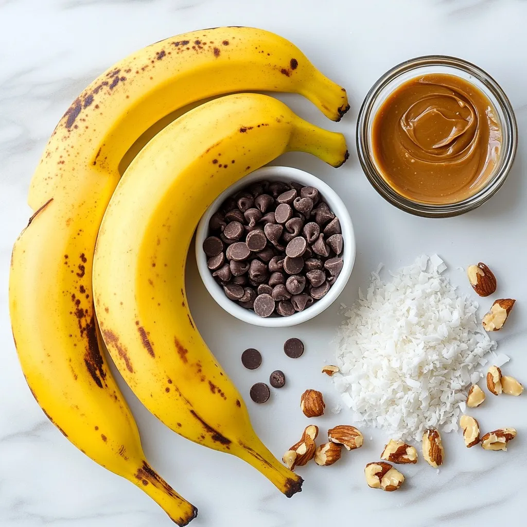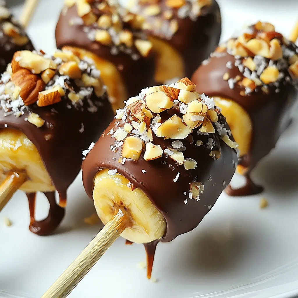Gather these ingredients for a tasty treat. The bananas should be ripe for the best flavor. Creamy peanut butter gives a rich taste and smooth texture. Dark chocolate chips melt well and coat the bananas perfectly. Coconut oil helps the chocolate stay smooth. Crushed nuts add crunch, while shredded coconut gives extra flavor. Lastly, popsicle sticks hold everything together.