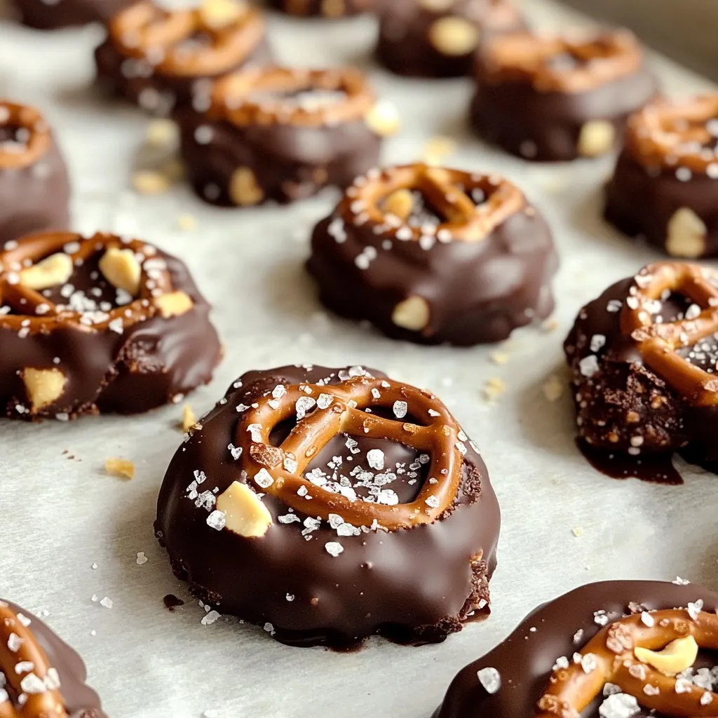 - 1 cup pretzel sticks, broken into small pieces - 1 cup unsalted roasted peanuts - 1 ½ cups dark chocolate chips - 1 tablespoon coconut oil - Sea salt for sprinkling These ingredients create a tasty mix of sweet and salty. The pretzels add crunch, while the peanuts give a nutty flavor. Dark chocolate brings a rich taste that pairs well with both. Coconut oil helps the chocolate melt smoothly. You can mix in some fun extras. Try adding: - ½ cup mini marshmallows for a sweet twist - ¼ cup dried cranberries for a fruity touch - A sprinkle of cinnamon for warmth These optional ingredients can change the flavor and make your clusters more unique. Feel free to experiment and find your favorite mix! If you need to avoid certain allergens, don’t worry. Here are some substitutes: - Use gluten-free pretzels if you need a gluten-free snack. - Swap peanuts for sunflower seeds if you have a nut allergy. - Replace dark chocolate with dairy-free chocolate chips for a vegan option. These substitutes allow everyone to enjoy these clusters. Always check labels to ensure safety for allergies! {{ingredient_image_1}} Start with your baking sheet. Grab parchment paper and line it well. This step helps the clusters not stick. Make sure to cover the whole sheet. Now you're ready for the fun part! Take a microwave-safe bowl. Add 1 ½ cups of dark chocolate chips and 1 tablespoon of coconut oil. Microwave this mixture in 30-second bursts. Stir after each round. Keep going until the mix is smooth and melted. This usually takes about 1 to 2 minutes. Once your chocolate is melted, take it out carefully. Now, add 1 cup of broken pretzel pieces and 1 cup of roasted peanuts. Use a spatula to fold them into the chocolate. Make sure every piece gets coated well. This blend of salty and sweet is what makes it special! Grab a spoon or a cookie scoop. Use it to drop clusters of the mix onto your prepared sheet. Space them out a bit. Once all clusters are formed, sprinkle a little sea salt on top. This adds a nice touch. Let the clusters sit at room temperature for about 10 minutes. Then, move them to the fridge for 30 minutes to set. Enjoy your tasty treat! To melt chocolate well, use a microwave-safe bowl. Combine dark chocolate chips and coconut oil. Heat in 30-second bursts. Stir the mix between each time. This helps avoid burning. You will know it's ready when it’s smooth and glossy. If it looks thick, keep stirring. The heat from the bowl can help. To stop your clusters from sticking, use parchment paper. Line your baking sheet with it before you start. This makes it easy to lift the clusters off later. Make sure each cluster has space around it. This helps them cool without sticking together. Want to make your clusters even better? Try adding toppings! A sprinkle of sea salt adds a nice touch. You could also try mini chocolate chips or crushed nuts. Dried fruits like cranberries or raisins can add a sweet twist. Just remember to keep it balanced. You want the sweet and salty to shine together! Pro Tips Use Quality Chocolate: Higher quality dark chocolate will melt smoother and provide a richer flavor to your clusters. Customize Your Nuts: Feel free to substitute or add other nuts such as almonds or cashews for added texture and flavor. Chill for Better Texture: Allowing the clusters to set in the refrigerator ensures they hold their shape and have a satisfying crunch. Experiment with Toppings: Enhance your clusters by adding toppings like crushed pretzels, sprinkles, or drizzles of white chocolate. {{image_2}} You can make this snack lighter by using milk chocolate or even white chocolate. These options can reduce the sugar and fat in your clusters. You may also try semi-sweet chocolate for a nice balance. If you want to lower the fat, use less coconut oil or skip it entirely. This change will keep the clusters tasty without losing their charm. Try adding dried fruits like cranberries or raisins for extra sweetness. You can also mix in spices like cinnamon or a pinch of cayenne for a kick. These flavors pair great with the saltiness of the pretzels. Another idea is to add a sprinkle of sea salt on top for a sweet and salty treat. Each addition can change the vibe of your clusters and make them unique. Kids love to mix things up! Let them add their favorite treats like mini marshmallows or colorful candies. You can also use different nuts, like almonds or cashews, for a fun twist. Letting kids help creates a fun activity and a special snack they made themselves. Enjoying these clusters together will make your snack time even better. To keep your Chocolate Pretzel Peanut Clusters fresh, store them in an airtight container. Line the container with parchment paper to avoid sticking. This simple step helps maintain their crunch and flavor. Place the container in a cool, dry place, away from sunlight and heat. When stored properly, these clusters last about one week at room temperature. If you keep them in the fridge, they can last up to two weeks. Just make sure to check for any changes in texture or smell before enjoying them again. You can freeze these clusters to extend their shelf life. Place them in a single layer on a baking sheet until they are firm. Then, transfer them to a freezer-safe bag or container. They can last up to three months in the freezer. When ready to eat, just let them thaw at room temperature for a few minutes. Yes, you can use milk chocolate. It will make the clusters sweeter and creamier. Dark chocolate gives a rich flavor, while milk chocolate is softer. Choose what you like best! If you need a substitute for coconut oil, you can use vegetable oil. You can also use butter for a rich taste. Both options work well to help the chocolate melt smoothly. Yes, these clusters can be gluten-free. Just make sure to use gluten-free pretzels. Many brands offer gluten-free options. Always check labels if you have gluten allergies. Absolutely! You can use almonds, cashews, or walnuts. Each nut adds a 