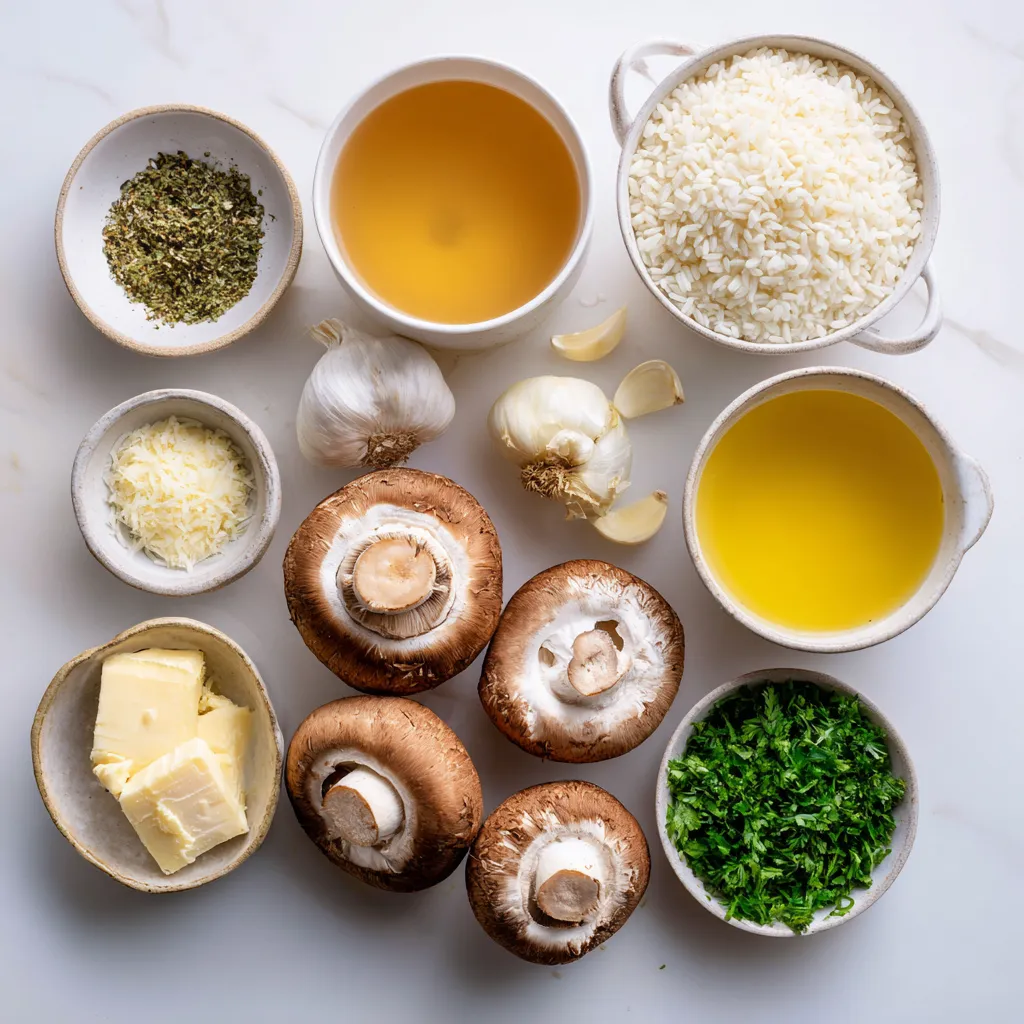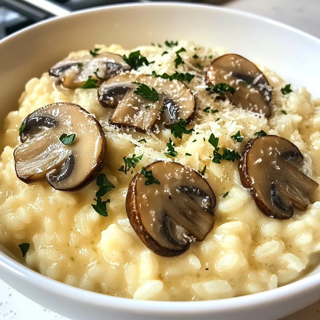 - 1 cup Arborio rice - 4 cups vegetable broth - 1 cup mushrooms, sliced (such as cremini or shiitake) - 1 small onion, finely chopped - 2 cloves garlic, minced In creamy mushroom risotto, Arborio rice is key. This rice has a high starch content. When cooked, it gives risotto its creamy texture. Vegetable broth adds rich flavor. Always use warm broth to keep the cooking process smooth. Mushrooms, like cremini or shiitake, give depth and umami. Onion and garlic add a nice base of flavor. - 1 cup heavy cream - Β½ cup Parmesan cheese, grated - 2 tablespoons olive oil - 1 tablespoon butter - Salt and pepper to taste Heavy cream makes the risotto rich and silky. Parmesan cheese adds a savory touch. Olive oil and butter help sautΓ© vegetables and enhance flavor. Don't forget salt and pepper! They bring out the dish's best taste. - Fresh parsley, chopped Fresh parsley adds color and a hint of freshness. It brightens the dish and enhances the overall look. When you're ready to serve, sprinkle the parsley on top for that perfect finishing touch. {{ingredient_image_1}} 1. Heating vegetable broth: Start by pouring 4 cups of vegetable broth into a saucepan. Heat it over medium flame. Keep it warm, but don’t boil it. This step is key for a nice risotto. 2. Chopping vegetables: Grab a small onion and chop it finely. Next, mince 2 cloves of garlic. For the mushrooms, you can use cremini or shiitake. Slice 1 cup of mushrooms. Having your veggies ready makes cooking easier! 1. SautΓ©ing onion, garlic, and mushrooms: In a large skillet, heat 2 tablespoons of olive oil and 1 tablespoon of butter over medium heat. Add the chopped onion and sautΓ© until it looks translucent, about 5 minutes. Then, toss in the minced garlic and sliced mushrooms. Cook for 5-7 minutes. Stir often until the mushrooms are tender and any moisture is gone. 2. Toasting the rice: Stir in 1 cup of Arborio rice into the skillet. Cook it for 1-2 minutes. This toasting step warms the rice and helps it soak up all the flavors. 1. Adding broth gradually: Now, it’s time for the broth! Take a ladle and pour in some warm vegetable broth. Stir the rice often and let it soak up the broth before adding more. Repeat this for about 18-20 minutes. This process makes the risotto creamy. 2. Achieving creamy texture: Keep stirring and adding broth until the rice is creamy and al dente. Once the rice reaches the right texture, stir in 1 cup of heavy cream and Β½ cup of grated Parmesan cheese. Mix well until everything is beautifully combined. Season with salt and pepper to taste. Now, your creamy mushroom risotto is almost ready to enjoy! When making creamy mushroom risotto, the right ingredients are key. I recommend using cremini or shiitake mushrooms. They add rich flavor and a nice texture. Feel free to mix and match for a unique taste. For the rice, always select Arborio rice. This short-grain rice absorbs liquid well, creating that creamy texture we love in risotto. Stirring is crucial for creaminess. I suggest stirring the rice often while cooking. This action releases starch, making the dish silky smooth. Keep the heat at medium. If it’s too high, the rice may cook unevenly. You want it to simmer gently, allowing the grains to absorb the broth slowly. Season your risotto at the end. A pinch of salt and pepper brings out the flavors. You can also add a squeeze of lemon juice for brightness. When garnishing, wait until just before serving. Freshly chopped parsley adds color and a fresh taste. Enjoy your delicious creation! Pro Tips Use Quality Broth: The flavor of your risotto largely depends on the quality of the vegetable broth you use. Opt for homemade or low-sodium store-bought broth for the best results. Stir Constantly: Stirring continuously helps release the starches from the Arborio rice, which creates that creamy texture risotto is known for. Don’t skip this step! Add Broth Gradually: Adding the broth one ladle at a time allows the rice to absorb the liquid and cook evenly, resulting in perfectly al dente grains. Finish with Fresh Herbs: Garnishing with freshly chopped parsley not only enhances the presentation but also adds a burst of freshness to the rich flavors of the risotto. {{image_2}} Adding protein can make your creamy mushroom risotto even more filling. You can use chicken or shrimp for a heartier dish. Cook the chicken until golden and dice it up. For shrimp, add them just before the rice is done. If you prefer a vegetarian option, tofu is a great choice. Just press and cube the tofu, then sautΓ© it until golden before mixing it in. Herbs can take your risotto to the next level. Thyme, basil, or sage add fresh notes. Chop them finely and stir them in during the last minute of cooking. You can also switch up the cheese. Goat cheese offers a tangy kick that works well with mushrooms. Just crumble some in when you add the heavy cream for a rich taste. Want to sneak in more veggies? Spinach or peas are perfect. Add them in the last five minutes of cooking. This keeps them bright and fresh. Roasted bell peppers also make a great addition. They add sweetness and color. Just chop them up and mix them in with the rice for a delicious twist. To keep your creamy mushroom risotto fresh, store it in an airtight container. Allow it to cool to room temperature first. Place it in the fridge for up to three days. Make sure to label the container with the date. This way, you can track how long it has been stored. Avoid leaving it out at room temperature for too long. This helps prevent spoilage and keeps it safe to eat. If you want to save risotto for later, freezing is a good option. First, let the risotto cool completely. Then, portion it into freezer-safe bags or containers. Squeeze out as much air as you can before sealing. This prevents freezer burn and keeps the flavor intact. Risotto can be frozen for up to three months. When you’re ready to enjoy it again, thaw it overnight in the fridge. To reheat risotto, use a sa
