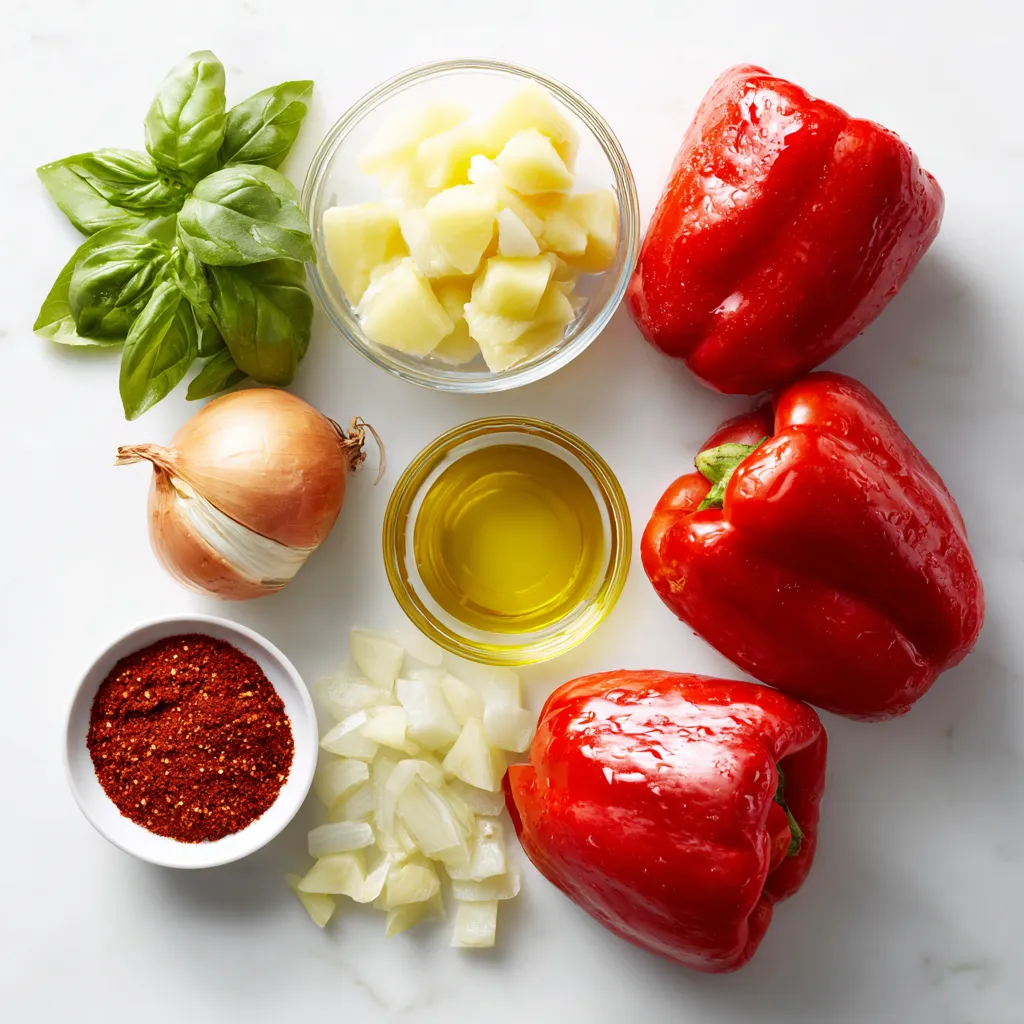 I love using fresh red bell peppers for this soup. They add a sweet and smoky taste. Start with four large red bell peppers. Roasting them brings out their flavor. You’ll also need one medium onion, three cloves of garlic, and one medium potato. The potato adds creaminess and thickness.