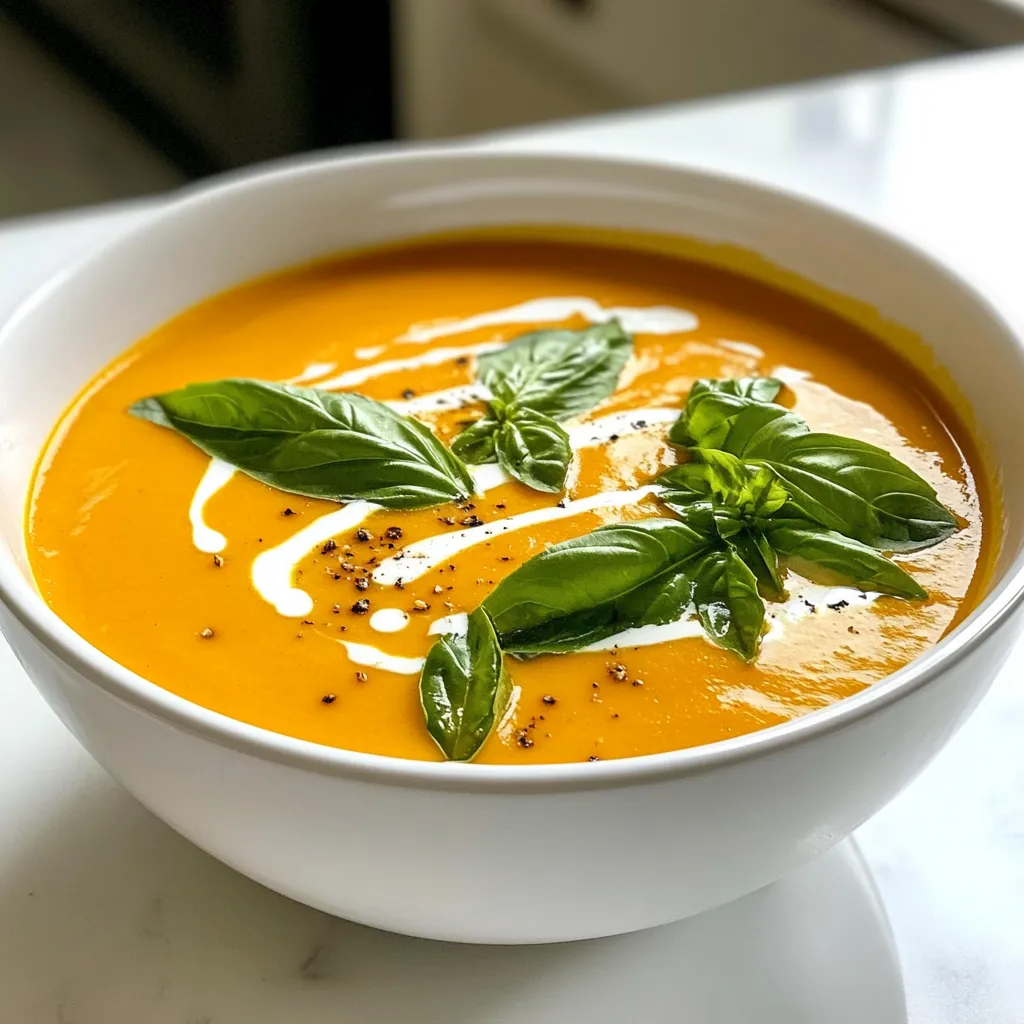 A delicious and creamy soup made with roasted red bell peppers, perfect for a comforting meal.