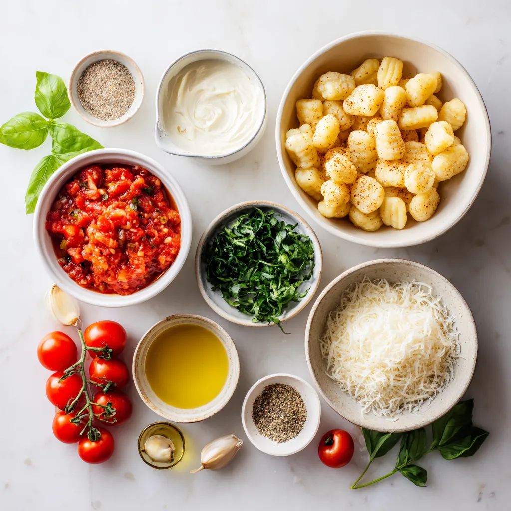 List of Ingredients for Creamy Tomato Basil Gnocchi