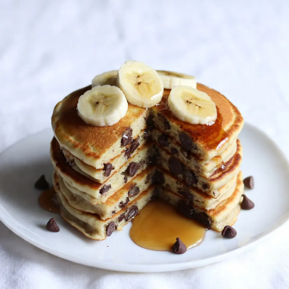 Delicious pancakes made with ripe bananas and chocolate chips, perfect for breakfast.