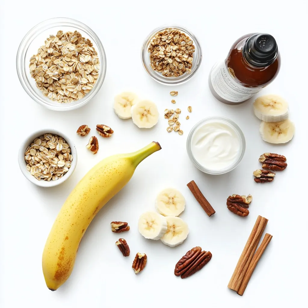 For toppings, I love using sliced bananas, crunchy pecans, and granola. A dash of nutmeg on top completes the look. Enjoy gathering these ingredients before blending them into a tasty breakfast or snack.