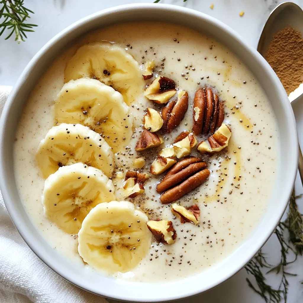 – Toppings: sliced bananas, chopped pecans, granola, and a sprinkle of nutmeg
