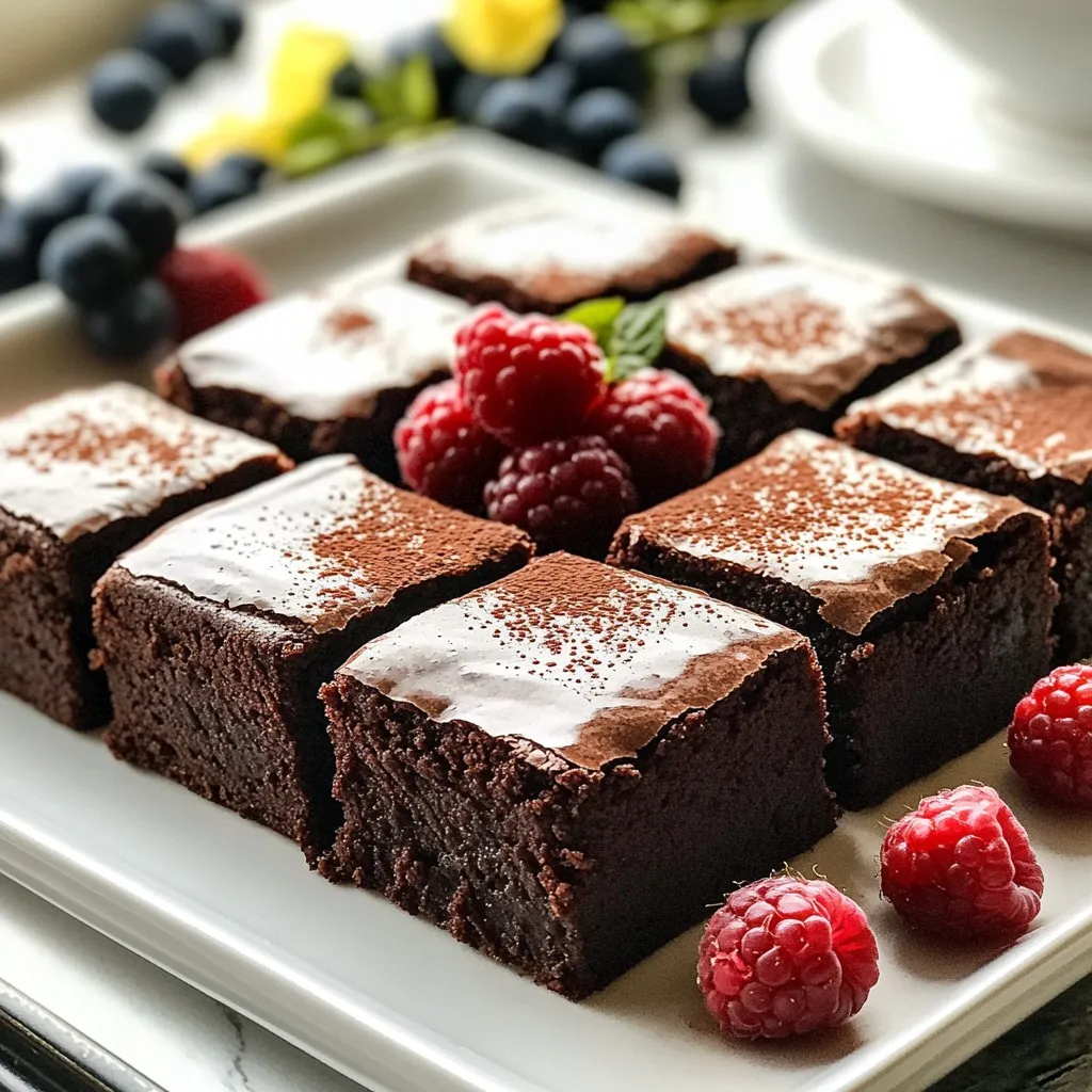 Serve the brownies dusted with cocoa powder or powdered sugar and garnish with fresh berries or a scoop of vanilla ice cream.