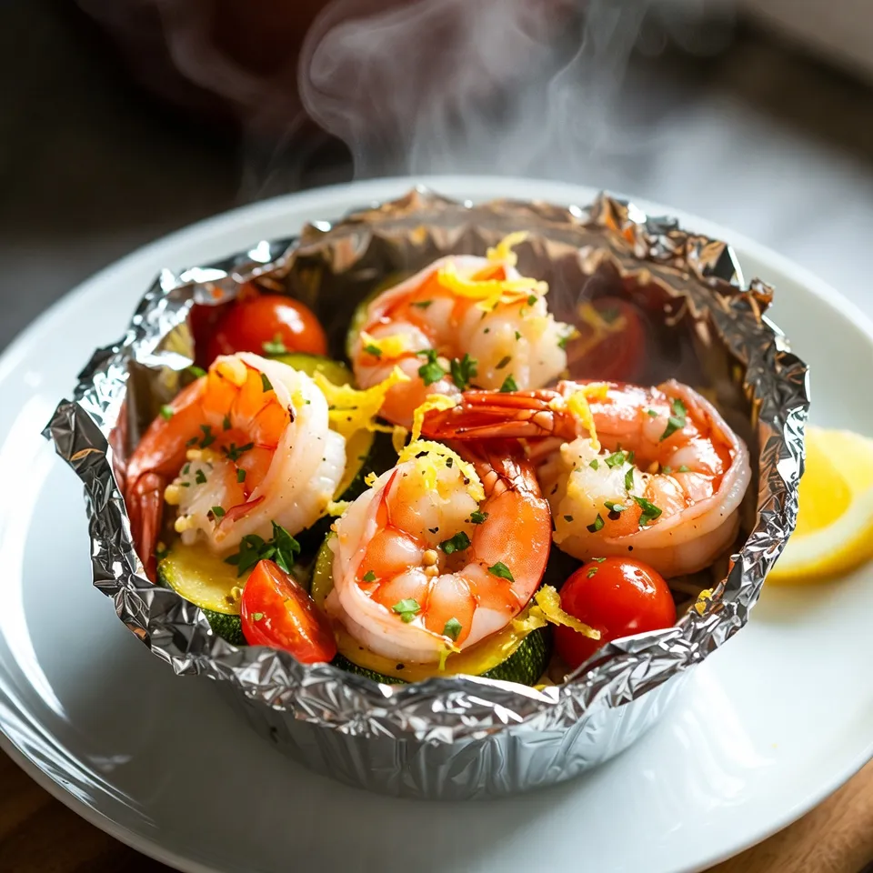 Delicious shrimp scampi cooked in garlic butter, served in foil packs for easy grilling or baking.