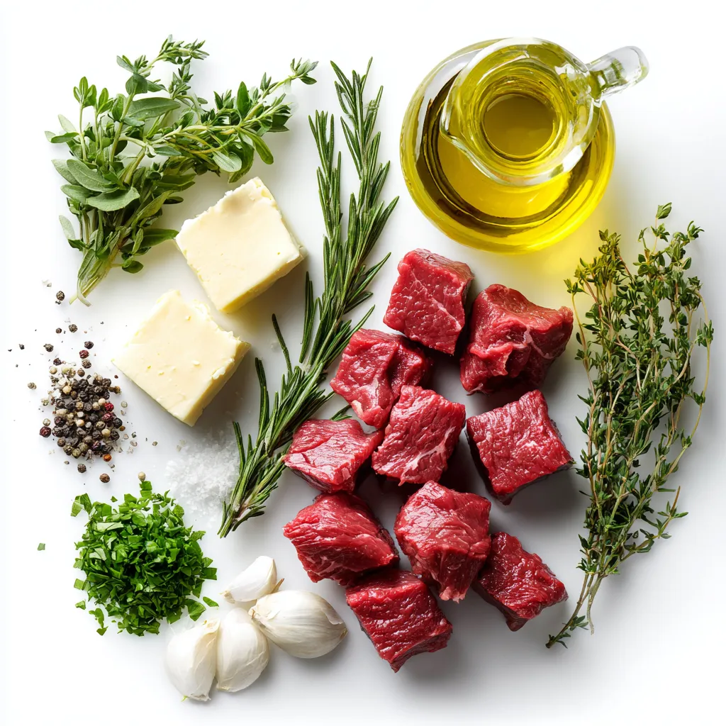Sirloin steak is my choice for this dish. It has great flavor and tenderness. Cut it into 1-inch cubes. This size cooks quickly and stays juicy. Next, we need unsalted butter. It adds richness and allows the garlic to shine. Speaking of garlic, use four cloves and mince them finely. Fresh herbs like rosemary and thyme add depth. They bring a nice aroma to the steak bites.