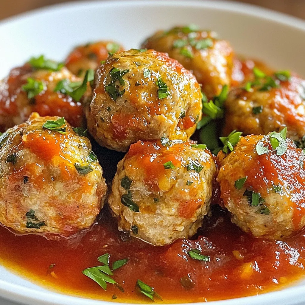 Delicious turkey meatballs infused with garlic and herbs, served over marinara sauce.