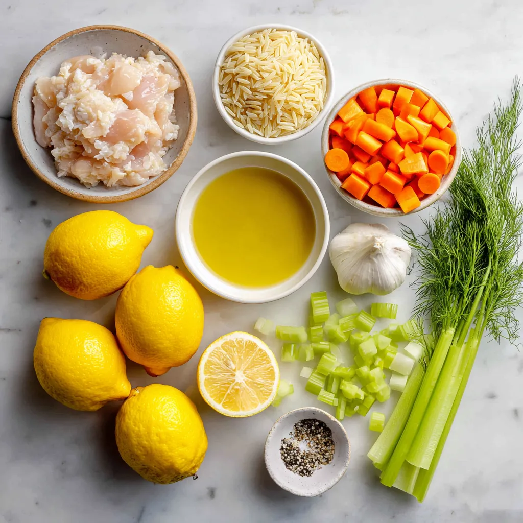 Start by gathering all your ingredients. This makes cooking easier and faster. You need chicken breasts, broth, orzo, carrots, celery, onion, garlic, eggs, lemon juice, lemon zest, dill, salt, and pepper. Measure everything out before you begin. This step helps you stay organized.
