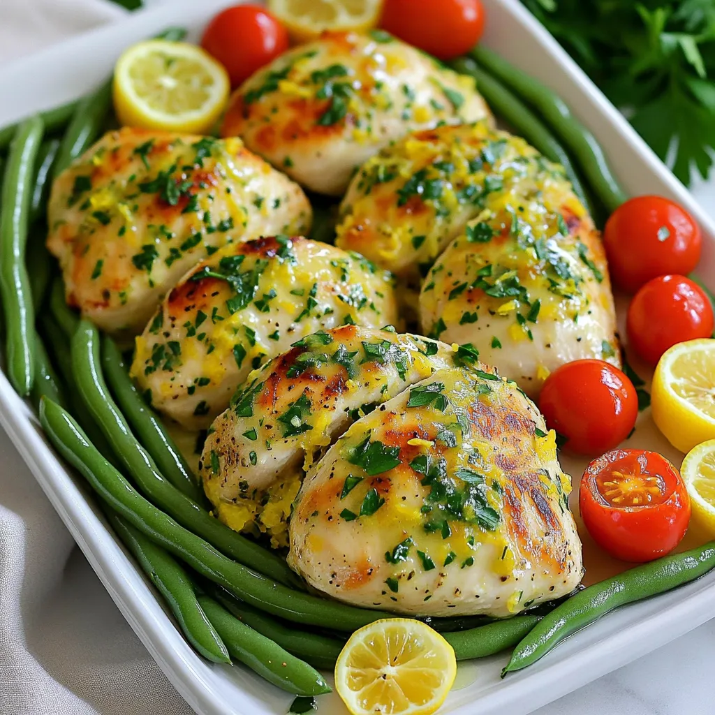 Gather these ingredients to make your Lemon Herb Chicken & Green Beans. The chicken gives you a tasty protein. Fresh lemons add bright flavor. Olive oil keeps everything moist.