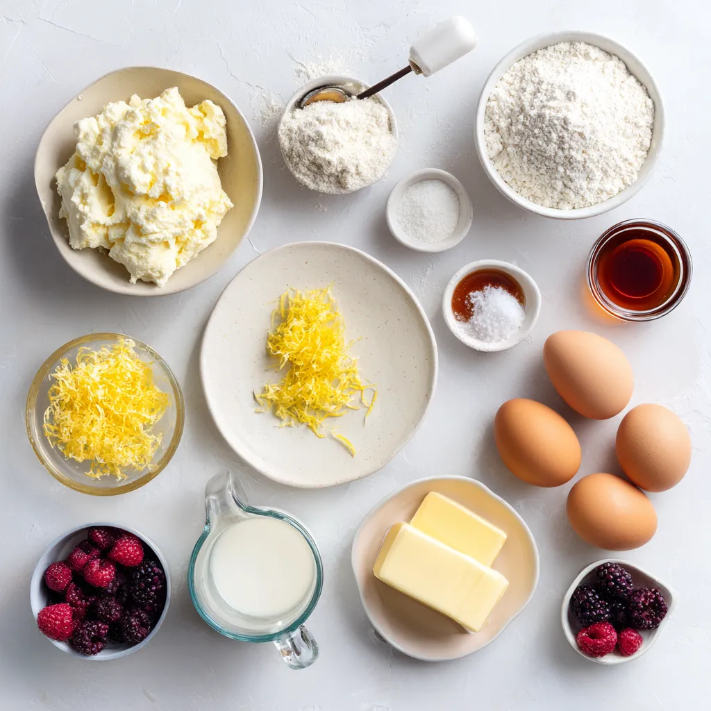 In a large bowl, mix together the ricotta cheese, eggs, vanilla extract, lemon zest, and milk until well combined.