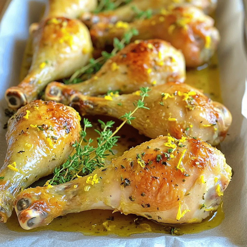 Start by gathering your ingredients. You will need 8 chicken drumsticks, olive oil, lemons, garlic, thyme, salt, pepper, paprika, and honey if you want added sweetness. Preheat your oven to 425°F (220°C). Line a baking sheet with parchment paper. This makes cleanup easy. In a large bowl, mix 3 tablespoons of olive oil, the zest and juice of 2 lemons, 4 minced garlic cloves, 1 tablespoon of fresh thyme, 1 teaspoon of salt, 1/2 teaspoon of black pepper, and 1 teaspoon of paprika. Stir this mixture well to create a flavorful marinade.