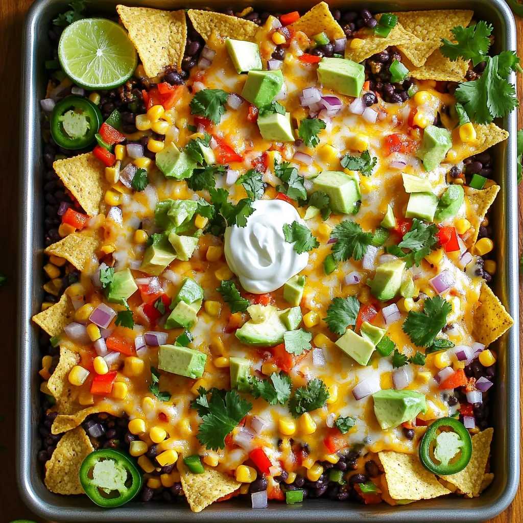 For toppings, you’ll need a diced avocado for creaminess. Sour cream or Greek yogurt adds tang, too. Fresh cilantro gives a burst of flavor. Lastly, garnish with jalapeño slices and lime wedges. These ingredients make your nachos fun and tasty!