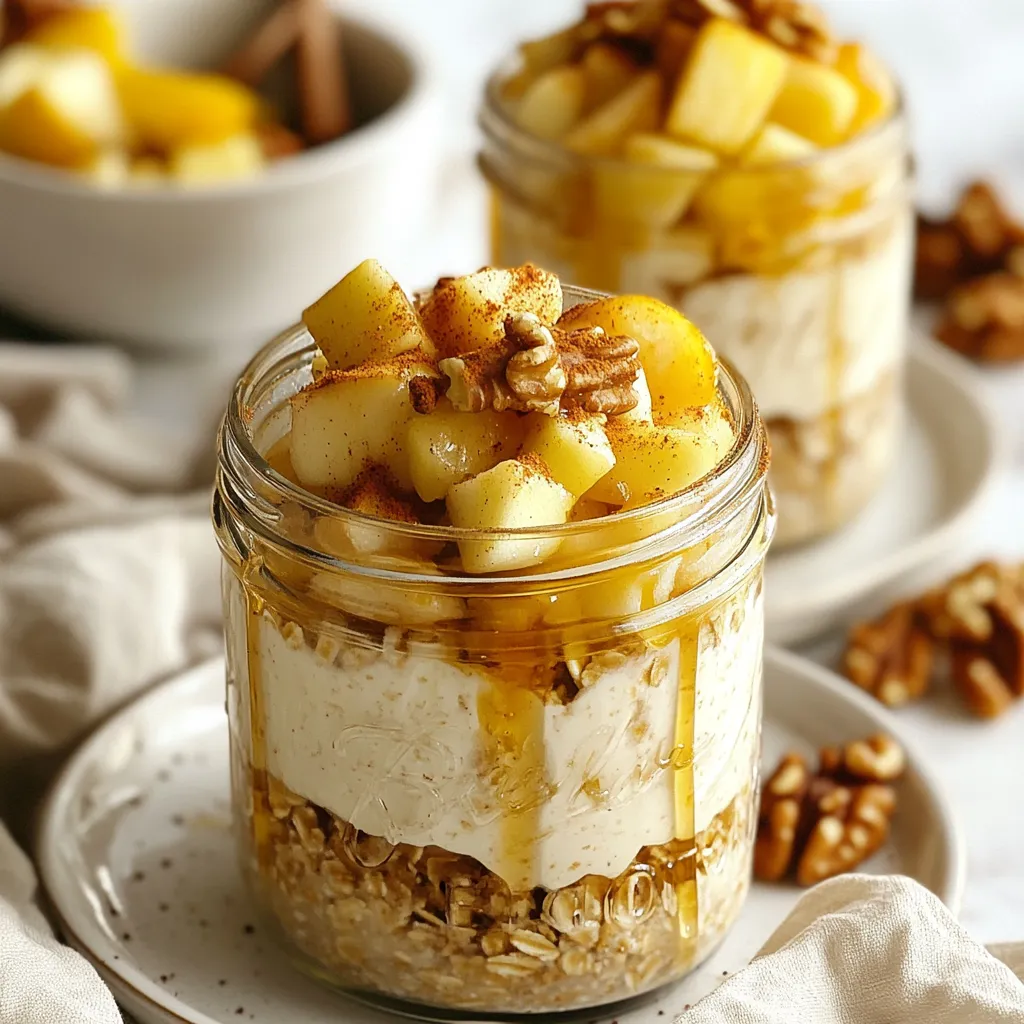 To make Maple Cinnamon Overnight Oats, gather these items: - 1 cup rolled oats - 2 cups unsweetened almond milk (or any milk of choice) - 2 tablespoons pure maple syrup - 1 teaspoon ground cinnamon - 1/2 teaspoon vanilla extract - 1/4 cup Greek yogurt (optional for creaminess) - 1/4 cup chopped nuts (walnuts or pecans) - 1/2 cup diced apples - Pinch of salt You can swap some ingredients for different options: - Use coconut milk or oat milk instead of almond milk. - Try honey or agave syrup instead of maple syrup. - You can skip the Greek yogurt for a dairy-free version. - Chopped almonds or sunflower seeds work well in place of walnuts. - Use pears or bananas if you don’t have apples. This recipe is not only tasty but also packed with nutrition. Each serving provides: - About 250-300 calories, depending on added toppings. - Good sources of fiber from oats and fruits. - Protein from Greek yogurt and nuts. - Healthy fats from nuts, making it a filling meal. These oats are a great start to your day! {{ingredient_image_1}} Start by gathering your ingredients. You need: - 1 cup rolled oats - 2 cups unsweetened almond milk (or any milk of choice) - 2 tablespoons pure maple syrup - 1 teaspoon ground cinnamon - 1/2 teaspoon vanilla extract - 1/4 cup Greek yogurt (optional for creaminess) - 1/4 cup chopped nuts (walnuts or pecans) - 1/2 cup diced apples - Pinch of salt In a medium bowl, mix the rolled oats and almond milk. Add the maple syrup, cinnamon, vanilla extract, and salt. If you want creaminess, stir in Greek yogurt until it blends well. Next, fold in the chopped nuts and diced apples. Make sure they are mixed evenly. To ensure a smooth mixture, start with the dry ingredients first. This helps avoid lumps. When adding the wet ingredients, stir gently. If you want extra creaminess, use a whisk for better results. Always taste your mixture before you pack it. Adjust sweetness by adding more maple syrup if needed. Once mixed, divide the oats into mason jars or airtight containers. Layer them nicely for a fun look. Seal the jars tightly. Place them in the fridge overnight, or at least for four hours. This waiting time helps the oats soak up the flavors. In the morning, give the oats a good stir. If they seem thick, add a splash of milk. Enjoy your oats cold or warm them slightly if you prefer! To get the best creaminess in your oats, use Greek yogurt. It adds a thick texture. Mix it well with your oats and milk. If you want a lighter feel, skip the yogurt. You can add more almond milk, too. This will keep your oats soft and smooth. For a richer taste, try full-fat milk. Maple syrup and cinnamon shine in this recipe. You can add more flavors, too. Try nutmeg for warmth. A splash of vanilla extract adds sweetness. You can also mix in cocoa powder for a chocolate twist. Fresh fruits, like berries, will boost flavor. Experiment and find your favorite blend! Serve your overnight oats in jars for a pretty look. Top with extra apples and nuts. A sprinkle of cinnamon or a drizzle of maple syrup makes it special. If you're in a rush, grab a jar and go! You can also enjoy them warm; just heat them briefly. Add a dollop of yogurt on top for a creamy finish. Pro Tips Use Steel-Cut Oats for a Chewy Texture: Steel-cut oats will give you a heartier texture compared to rolled oats, perfect for those who enjoy a bite in their breakfast. Customize Your Sweetness: Adjust the amount of maple syrup based on your taste preference; you can also substitute with honey or agave syrup for a different flavor. Add More Flavor with Spices: Experiment with spices like nutmeg or ginger to elevate the flavor profile of your overnight oats. Make It a Meal Prep Star: Double or triple the recipe to have healthy breakfasts ready for the week; just store them in individual containers for easy grab-and-go options. {{image_2}} You can change up the flavor of your oats easily. Try adding fresh berries instead of apples. Blueberries, strawberries, and raspberries all work well. You can also swap maple syrup for honey or agave syrup. For a tropical twist, add chopped pineapple or mango. If you love chocolate, mix in cocoa powder or chocolate chips. Each option gives your oats a new taste! This recipe is easy to adjust for different diets. To make it vegan, just skip the Greek yogurt or use a plant-based yogurt. Use almond milk or any nut milk. For gluten-free oats, simply check that your rolled oats are certified gluten-free. This way, everyone can enjoy the meal. You can customize your oats with different ingredients. Instead of nuts, you can use seeds like chia or flaxseed. These add healthy fats and fiber. Swap out the apples for ripe bananas or pears for sweet flavor. You can also try different spices, like nutmeg or cardamom, to change the taste. The options are endless, so have fun experimenting! To store your maple cinnamon overnight oats, place them in airtight containers. Glass mason jars work great. You can also use plastic containers if you prefer. Make sure the lids fit tightly, so no air gets in. This keeps your oats fresh and tasty. You can keep your overnight oats in the fridge for up to five days. After that, the oats may lose their good taste and texture. If you see any signs of spoilage, like a weird smell or change in color, toss them out. Always trust your senses! You can enjoy your oats cold, straight from the fridge. If you want them warm, heat them gently in the microwave. Add a splash of almond milk to keep them creamy. Heat for about 30 seconds, then stir and check the warmth. Adjust as needed. Top your oats with fresh apples or a dash of cinnamon for extra flavor! Yes, you can make overnight oats without yogurt. The oats still absorb the milk well. Skipping yogurt will make the oats less creamy, but they will still taste great. You can add more almond milk instead. This keeps the mix moist and delicious. Overnight oats last about 4 to 5 days in the fridge. Make sure they are in a sealed jar. This keeps them