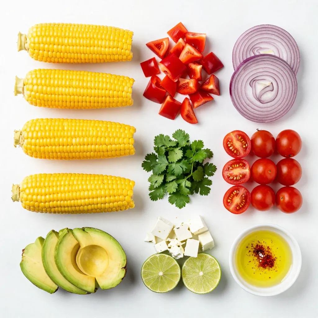 To make this vibrant salad, you will need the following ingredients: - 4 ears of corn, husked - 1 red bell pepper, diced - 1/2 cup red onion, finely chopped - 1 cup cherry tomatoes, halved - 1 avocado, diced - 1/2 cup crumbled feta cheese - 1/4 cup fresh cilantro, chopped - Juice of 2 limes - 2 tablespoons olive oil - 1 teaspoon chili powder - Salt and pepper to taste These fresh ingredients combine to create a bright and tasty dish. The corn brings sweetness, while the lime adds zest. The feta offers a creamy texture that balances other flavors. You can easily customize your salad. Here are some optional add-ins that enhance flavor: - Jalapeños for heat - Black beans for protein - Corn nuts for crunch - Avocado for creaminess - Cotija cheese for a different cheese flavor Feel free to mix and match these add-ins. They will give your salad extra depth and personality. If you can’t find certain ingredients, try these substitutions: - Use canned corn instead of fresh corn. - Swap red bell pepper for yellow or green peppers. - Use green onions in place of red onion. - Replace feta with goat cheese for a tangy twist. - Use lemon juice instead of lime juice. These substitutions ensure you can still enjoy this dish, even if you lack some ingredients. {{ingredient_image_1}} Start by heating your grill to medium-high. If you want, you can use a grill pan too. Husk four ears of corn and place them on the grill. Cook for about 10 to 12 minutes. Turn them often until they are charred and tender. Once done, take the corn off the grill and let it cool a little. After cooling, cut the kernels off the cobs and put them in a big bowl. In a small bowl, combine the juice of two limes, two tablespoons of olive oil, one teaspoon of chili powder, and salt and pepper to taste. Whisk these together until they mix well. This dressing will add a nice zing to your salad. To the bowl with the corn, add the diced red bell pepper, half a cup of red onion, one cup of halved cherry tomatoes, and one diced avocado. Next, pour the dressing over the corn mix. Gently toss everything together until it is well mixed. Finally, fold in half a cup of crumbled feta cheese and a quarter cup of chopped cilantro. This finishing touch adds freshness and flavor. Grilling corn adds a great smoky flavor. Start by preheating your grill to medium-high heat. Husk the corn well to avoid any husk bits on the grill. Place the corn on the grill and cook for about 10-12 minutes. Turn the corn every few minutes. Look for nice charred spots; this adds flavor. Once done, let it cool before cutting the kernels off. Presentation makes your salad pop. Serve the salad in a large bowl or individual cups. Garnish with extra cilantro on top. A lime wedge beside each serving adds a splash of color. This simple touch makes the dish more inviting. You can also sprinkle more feta on top for a tasty finish. Want to boost flavor? Add some chopped jalapeños for heat. You can also mix in black beans for protein and texture. If you like a bit of crunch, try adding crushed tortilla chips just before serving. For a tangy twist, drizzle some extra lime juice on top. Each of these adds a unique touch to your salad. Pro Tips Perfectly Charred Corn: Grill the corn until you see those beautiful char marks, as this enhances the flavor and gives a smoky taste to the salad. Fresh Ingredients: Use fresh, ripe avocados and tomatoes for the best flavor and texture. They make a significant difference in your salad! Make it Ahead: Prepare the corn and dressing in advance, and toss everything together just before serving to keep the ingredients fresh and vibrant. Customize Your Spice: Adjust the chili powder according to your heat preference. You can also add jalapeños for an extra kick! {{image_2}} To spice up your Mexican street corn salad, add jalapeños. Chop one or two and mix them in. You can also sprinkle some hot sauce over the top. This adds a kick that many will love. If you want more heat, switch the chili powder for cayenne. Adjust it to your taste for that perfect bite. For a vegetarian twist, keep the feta cheese. It adds great flavor. If you want a vegan option, simply leave out the cheese. You can also use avocado for creaminess. Another great option is to add roasted chickpeas for protein. They provide a nice crunch and are filling. Use seasonal ingredients to keep your salad fresh. In summer, add diced cucumbers for a refreshing bite. In fall, try roasted butternut squash for a warm flavor. You can mix in fresh herbs like basil or mint for a unique touch. This keeps the dish vibrant and exciting all year long. To keep your leftover Mexican street corn salad fresh, place it in an airtight container. Make sure to seal it well. This helps to keep out air and moisture. Store the salad in the fridge. It will stay tasty for a few days. If you want to keep it longer, consider freezing it. However, freezing can change the texture of some ingredients. Reheating this salad can be tricky. If you want to warm it up, do it gently. Place it in a pan over low heat. Stir it often to avoid burning. You can also serve it cold. Many people enjoy the fresh taste when it is straight from the fridge. This dish tastes great either way! Most of the ingredients in this salad have a good shelf life. Here’s a quick rundown: - Corn: Use fresh corn within a week. Cooked corn lasts about 3-5 days. - Bell pepper: Whole peppers can last up to 1-2 weeks in the fridge. - Red onion: Uncut onions can last for weeks. Once cut, use within 7-10 days. - Cherry tomatoes: They stay fresh for about a week. Store them at room temp. - Avocado: Ripe avocados last only 1-2 days. Store them in the fridge to extend life. - Feta cheese: Once opened, it will last about a week in the fridge. - Cilantro: Fresh cilantro stays good for about a week in the fridge. Knowing these details helps you enjoy your salad longer! Yes, you can use canned or frozen corn. Canned corn is quick and easy to use. Just drain 