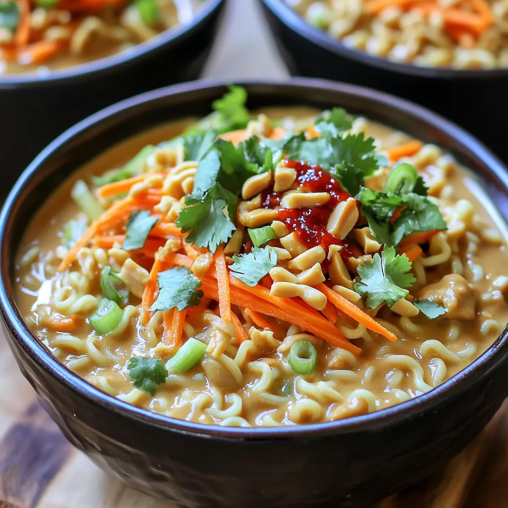 Each ingredient plays a key role in this dish. The instant ramen noodles serve as the base. They cook quickly and soak up flavor. Creamy peanut butter brings richness and depth. Soy sauce adds saltiness and umami. Sriracha gives heat, but you can adjust it to your taste. Sesame oil contributes a nutty aroma. Rice vinegar adds a slight tang. Green onions and carrots add freshness and crunch. Cilantro brightens the dish, while roasted peanuts offer extra texture.