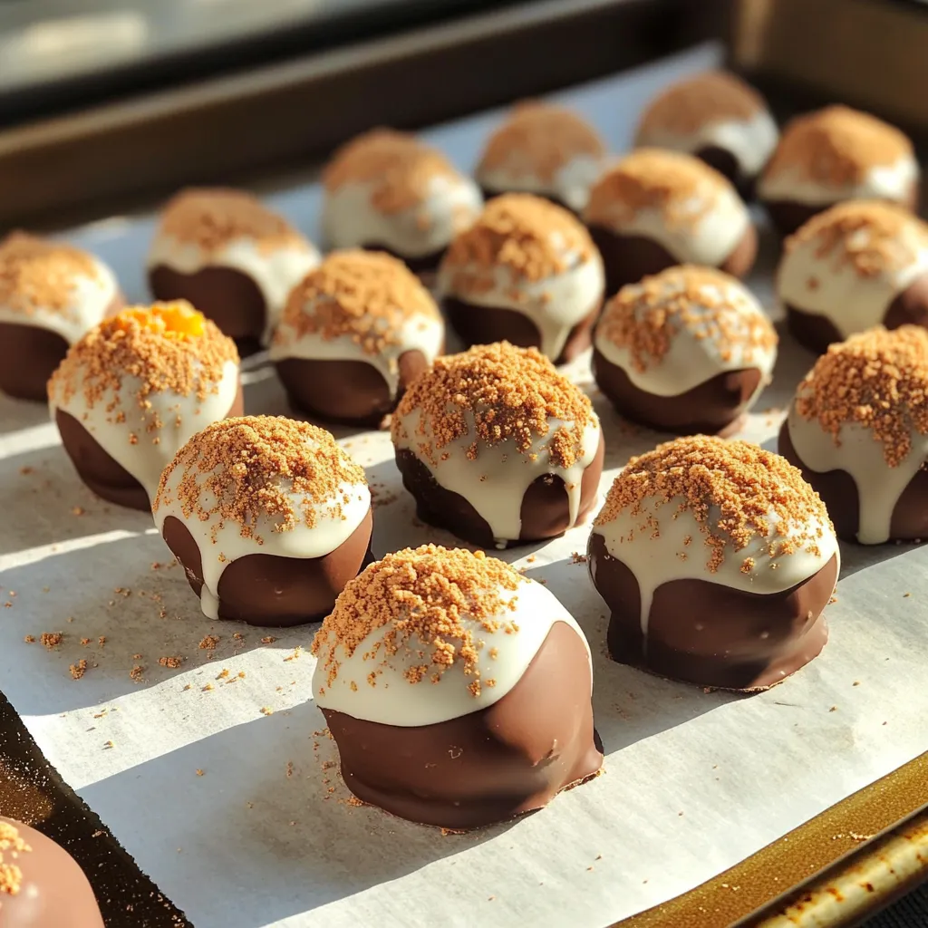 7. Roll in Graham Crackers: Immediately roll the dipped truffles in crushed graham crackers to coat. This adds a nice crunch.