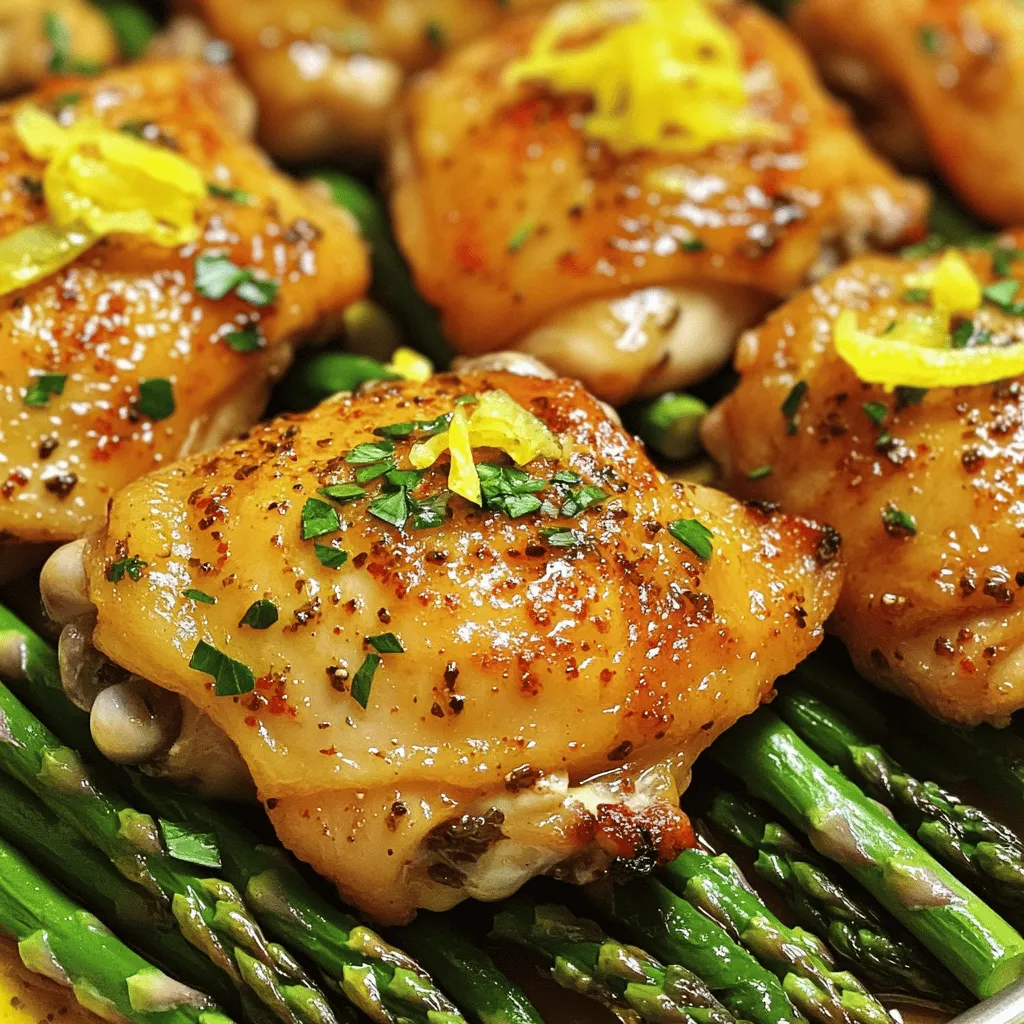 The ingredients in this dish create a balance of flavors. The chicken thighs give a rich taste, while the asparagus adds a fresh crunch. Garlic brings a lovely aroma, and lemon offers a bright zest.