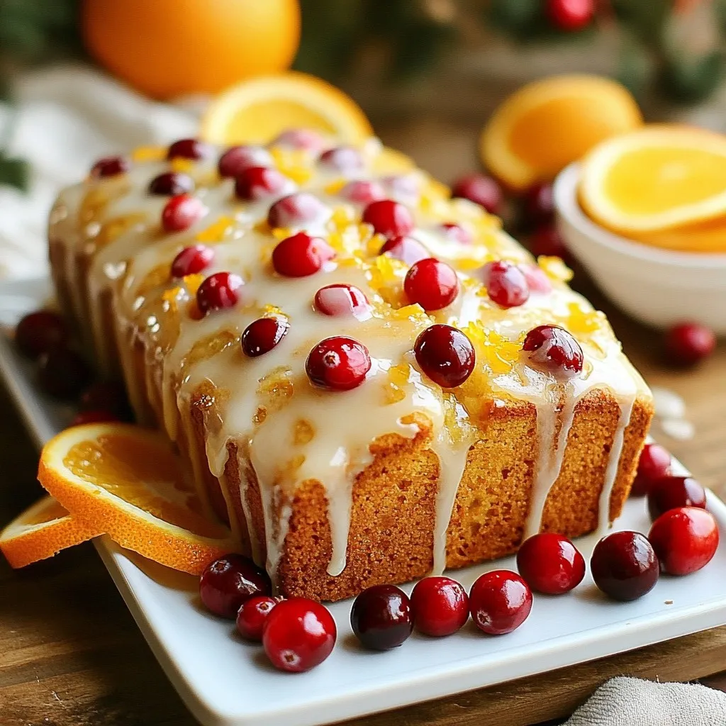 - Dry ingredients: - 2 cups all-purpose flour - 1 teaspoon baking soda - 1/2 teaspoon salt - 1 teaspoon ground cinnamon - Wet ingredients: - 1/2 cup unsalted butter, softened - 3/4 cup granulated sugar - 2 large eggs - 1 teaspoon vanilla extract - 1/2 cup orange juice (freshly squeezed if possible) - Zest of 1 large orange - Cranberries: - 1 1/2 cups fresh or frozen, roughly chopped - Orange glaze: - 1 cup powdered sugar - 2-3 tablespoons orange juice - Zest of 1 orange for garnish (optional) Gathering these ingredients sets you up for success. Choose fresh cranberries if you can. This choice adds a bright flavor. If you use frozen berries, make sure they are chopped. This helps them mix well into the batter. For the glaze, powdered sugar and orange juice create a sweet finish. Adding zest to the glaze boosts the flavor. This is optional, but I highly recommend it. Having all your ingredients ready makes baking smoother. It also helps you stay organized. Remember, baking is both science and art! {{ingredient_image_1}} First, you need to preheat your oven to 350°F (175°C). This is key for even baking. While your oven heats, grab a 9x5-inch loaf pan. Grease it well with butter or non-stick spray. Proper greasing helps the bread slide out easily after baking. If you skip this step, the bread might stick and break. Start by mixing your dry ingredients. In a medium bowl, whisk together: - 2 cups all-purpose flour - 1 teaspoon baking soda - 1/2 teaspoon salt - 1 teaspoon ground cinnamon Set this bowl aside. Next, in a large mixing bowl, cream together 1/2 cup of softened unsalted butter and 3/4 cup of granulated sugar until it's light and fluffy. This step adds air, making your bread soft. Then, add 2 large eggs, one at a time. Mix in 1 teaspoon of vanilla extract, 1/2 cup of orange juice, and the zest of 1 large orange. Now, gradually add the dry mix to the wet mix. Stir until just combined. Be careful not to overmix. It's okay if you see a few lumps. Finally, gently fold in 1 1/2 cups of chopped cranberries. This adds a burst of flavor. Pour the batter into your prepared loaf pan. Smooth the top with a spatula. Bake in the preheated oven for about 60 minutes. To check for doneness, insert a toothpick into the center. If it comes out clean, the bread is ready. After baking, let the bread cool in the pan for about 10 minutes. Then, move it to a wire rack to cool completely. This cooling step is crucial for the best texture. To keep your Orange Glazed Cranberry Bread moist, follow these tips: - Use Room Temperature Ingredients: Start with butter and eggs at room temperature. This helps them mix better and keeps the bread airy. - Do Not Overmix: When you combine the wet and dry ingredients, mix just until you see no flour. Lumps are okay; they help keep the bread soft. - Add an Extra Egg: For even more moisture, you can add one more egg. This will make the bread richer and fluffier. Adding spices or extracts can kick up the flavor of your bread. - Try Nutmeg: A pinch of nutmeg can add warmth. It pairs nicely with the orange and cranberry. - Add Almond Extract: Just a little can give a lovely twist to the flavor. - Fresh vs. Frozen Cranberries: Fresh cranberries give a tart bite. Frozen cranberries work too, but they may make the bread a bit denser. Make sure to chop them before use. These tips can help you create a delightful and moist Orange Glazed Cranberry Bread that everyone will love! Pro Tips Use Fresh Cranberries: Fresh cranberries provide the best flavor and texture. If using frozen, make sure to thaw and drain them well before adding to the batter. Adjust the Glaze Thickness: If you prefer a thicker glaze, use less orange juice. For a thinner glaze, add more juice until you reach your desired consistency. Don’t Overmix: When combining the dry and wet ingredients, mix just until incorporated to keep the bread light and fluffy. Store Properly: To keep the bread moist, wrap it tightly in plastic wrap or store it in an airtight container at room temperature for up to 3 days. {{image_2}} You can add a fun twist to your Orange Glazed Cranberry Bread. Nuts like walnuts or pecans give a nice crunch and flavor. They also add healthy fats. Just chop them up and fold them into the batter with the cranberries. You can also try adding other fruits, like blueberries. Blueberries bring a sweet and juicy taste. Mix in about a cup of fresh or frozen blueberries for a delightful change. If you're looking for healthier options, consider using whole wheat flour instead of all-purpose flour. Whole wheat flour adds fiber and nutrients. It keeps the bread moist and tasty. You can also swap out granulated sugar for alternatives like honey or maple syrup. This change can make your bread a bit healthier. If you want a vegan version, use flax eggs instead of real eggs. To make a flax egg, mix one tablespoon of ground flaxseed with three tablespoons of water. Let it sit for a few minutes until it thickens. These simple swaps help you enjoy a tasty treat that fits your diet. To keep your Orange Glazed Cranberry Bread fresh, follow these steps: - Allow the bread to cool completely. - Wrap it tightly in plastic wrap or foil. - Place the wrapped bread in an airtight container. This method helps prevent drying out. For best results, store it at room temperature for up to three days. If you live in a humid area, consider refrigerating it to avoid mold. Freezing is a great option if you want to save some for later. Here’s how to do it: - Wrap the cooled bread tightly in plastic wrap. - Then wrap it in aluminum foil for extra protection. - Label the package with the date. You can freeze this bread for up to three months. When you're ready to enjoy it, move the bread to the fridge overnight. After that, let it sit at room temperature for a few hours before unwrapping. This keeps it moist and tasty. Yes, you can use frozen cranberries. They work great in this recipe. Just chop them and fold them into the batter. No ne