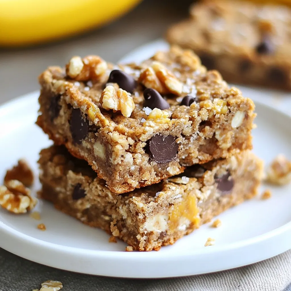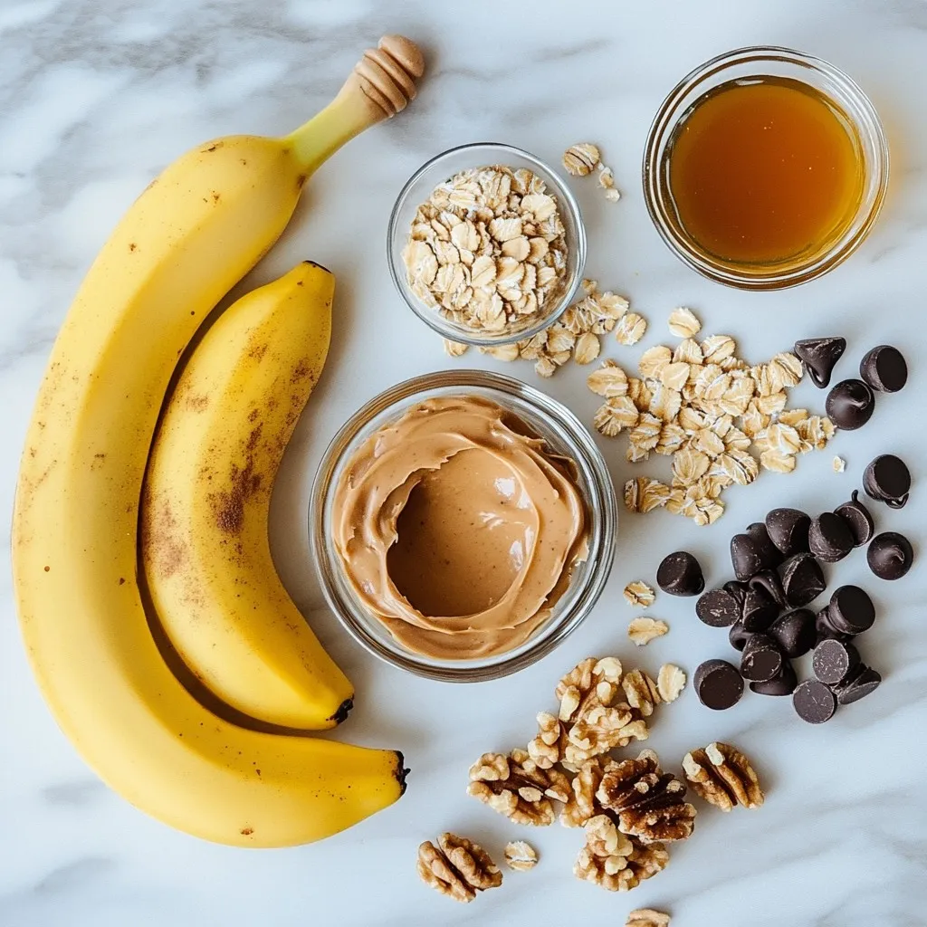 These ingredients bring together taste and nutrition. Ripe bananas add natural sweetness and moisture. Natural peanut butter gives healthy fat and protein. Honey or maple syrup serves as a sweetener, making the bars delightful. Rolled oats create a chewy base full of fiber. Chopped nuts add crunch and healthy fats. Dark chocolate chips or raisins bring in a sweet touch. Cinnamon adds warmth and flavor, while sea salt enhances all the tastes.