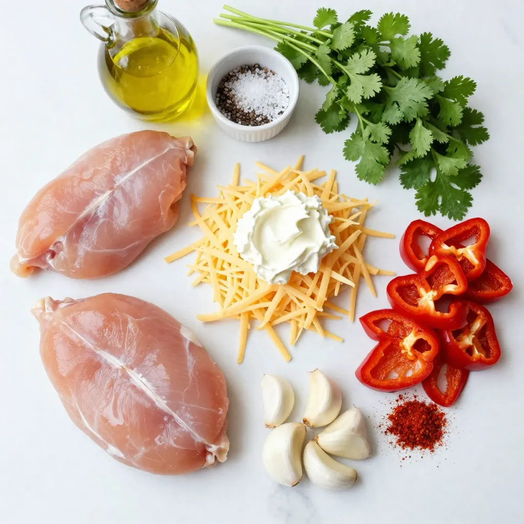 These ingredients are easy to find and combine well. The pepper jack cheese brings a nice kick. Cream cheese adds creaminess, and roasted red peppers give a sweet touch. Garlic and smoked paprika deepen the flavor. You can adjust salt and pepper to your taste. Olive oil is perfect for searing the chicken. Don’t forget fresh cilantro for a pop of color. Grab these items, and you are ready to create a savory meal!