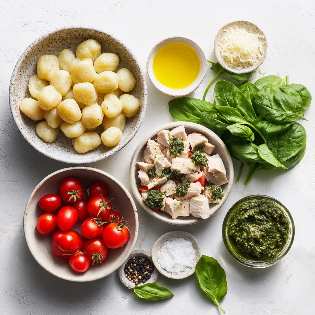 The main ingredients make this dish shine. Chicken breast gives the meal protein. Potato gnocchi adds a soft and chewy texture. Basil pesto brings vibrant flavors that tie it all together.