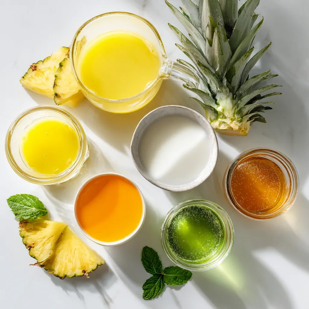 Fresh pineapple juice gives a bright flavor. Coconut milk adds creaminess. Orange juice brings sweetness, while lime juice adds zing. Honey or agave syrup gives a smooth touch. Club soda or sparkling water makes it fizzy and fun.