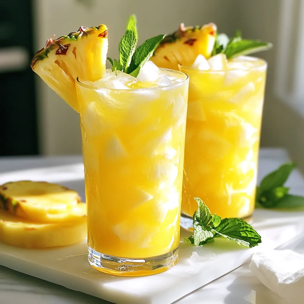 Garnish each glass with a fresh pineapple slice and a sprig of mint for a refreshing touch.