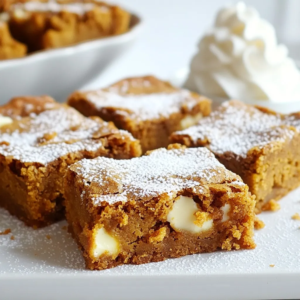 To make these blondies sweet and rich, I start with brown sugar. It gives a deep flavor. I use unsalted butter, melted for a smooth mix. Pumpkin puree adds moisture and a fall taste. Eggs help bind the mixture together. Vanilla extract adds a warm note.