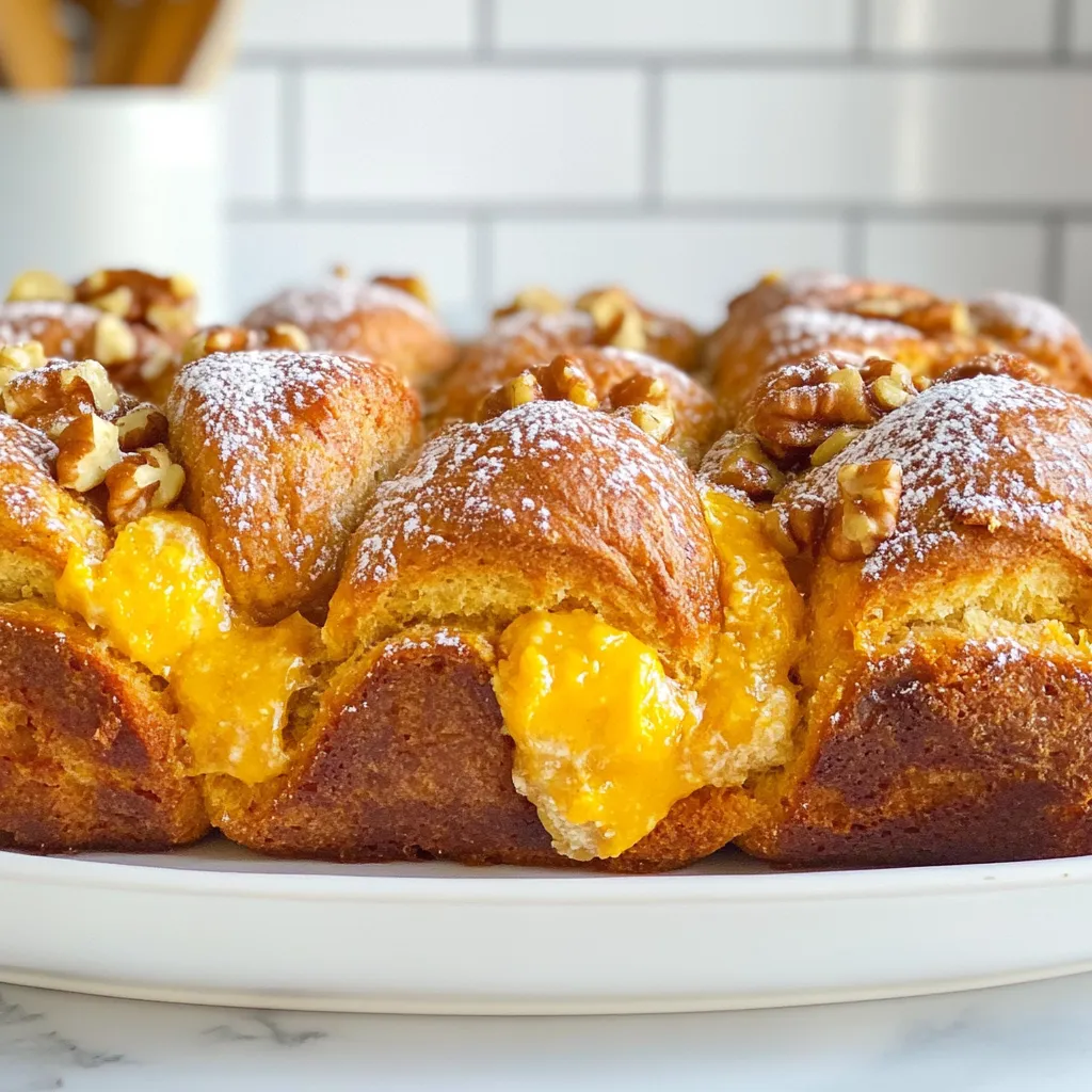 A delightful pull-apart bread infused with pumpkin and warm spices, perfect for fall.