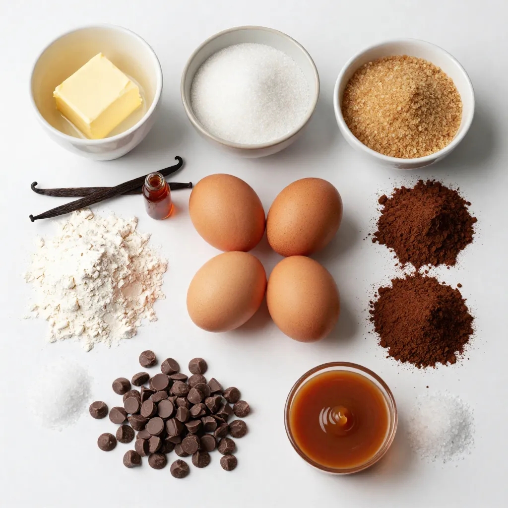 These ingredients create a rich and flavorful brownie. The unsalted butter gives a creamy base. The mix of granulated and brown sugar adds sweetness and depth. Eggs provide moisture and structure. Vanilla extract enhances the overall flavor profile.