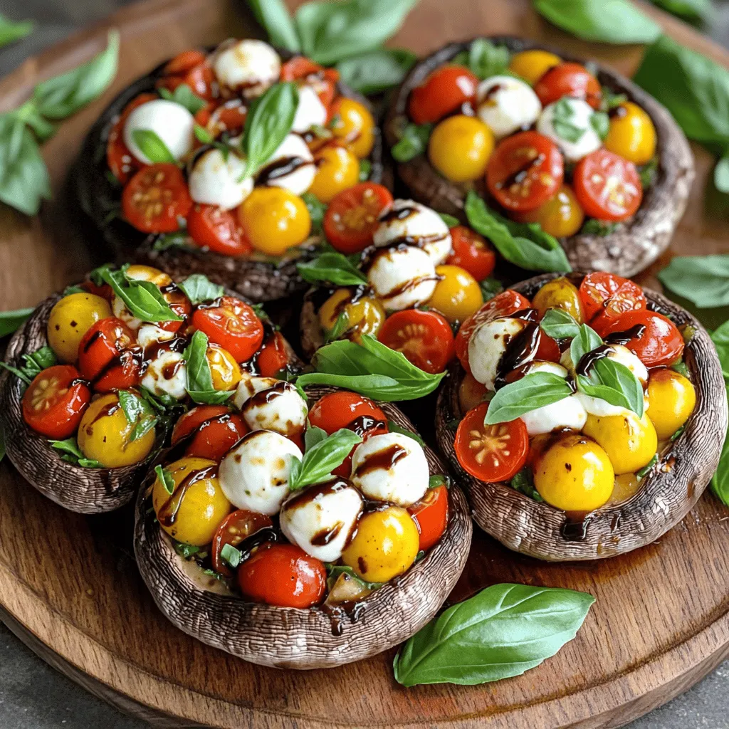 Feel free to get creative with your fillings. Instead of cherry tomatoes, use sun-dried tomatoes for a richer flavor. You can also add cooked quinoa for a hearty texture. If you like spice, toss in some diced jalapeños. For a smokier flavor, try adding roasted red peppers. These options give your Caprese mushrooms a personal touch.