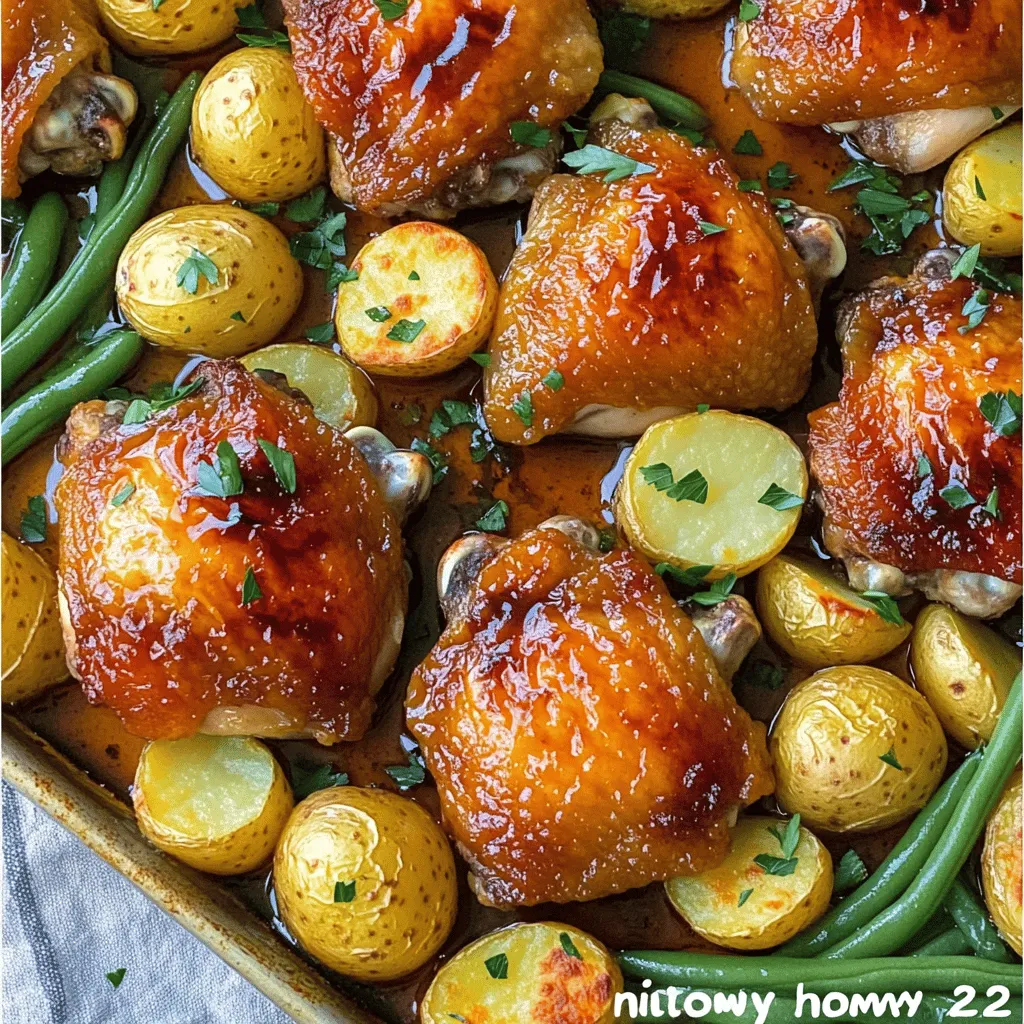 The additional ingredients support the main ones and add variety. Dried thyme gives an earthy flavor that complements the chicken. Smoked paprika adds a hint of smokiness without overpowering. Salt and pepper help balance all the flavors, making each bite delightful. Baby potatoes provide a hearty side, roasting up crispy on the outside and tender inside. Fresh green beans add a bright, crunchy contrast. Finally, fresh parsley as a garnish brightens the plate and adds a pop of color.