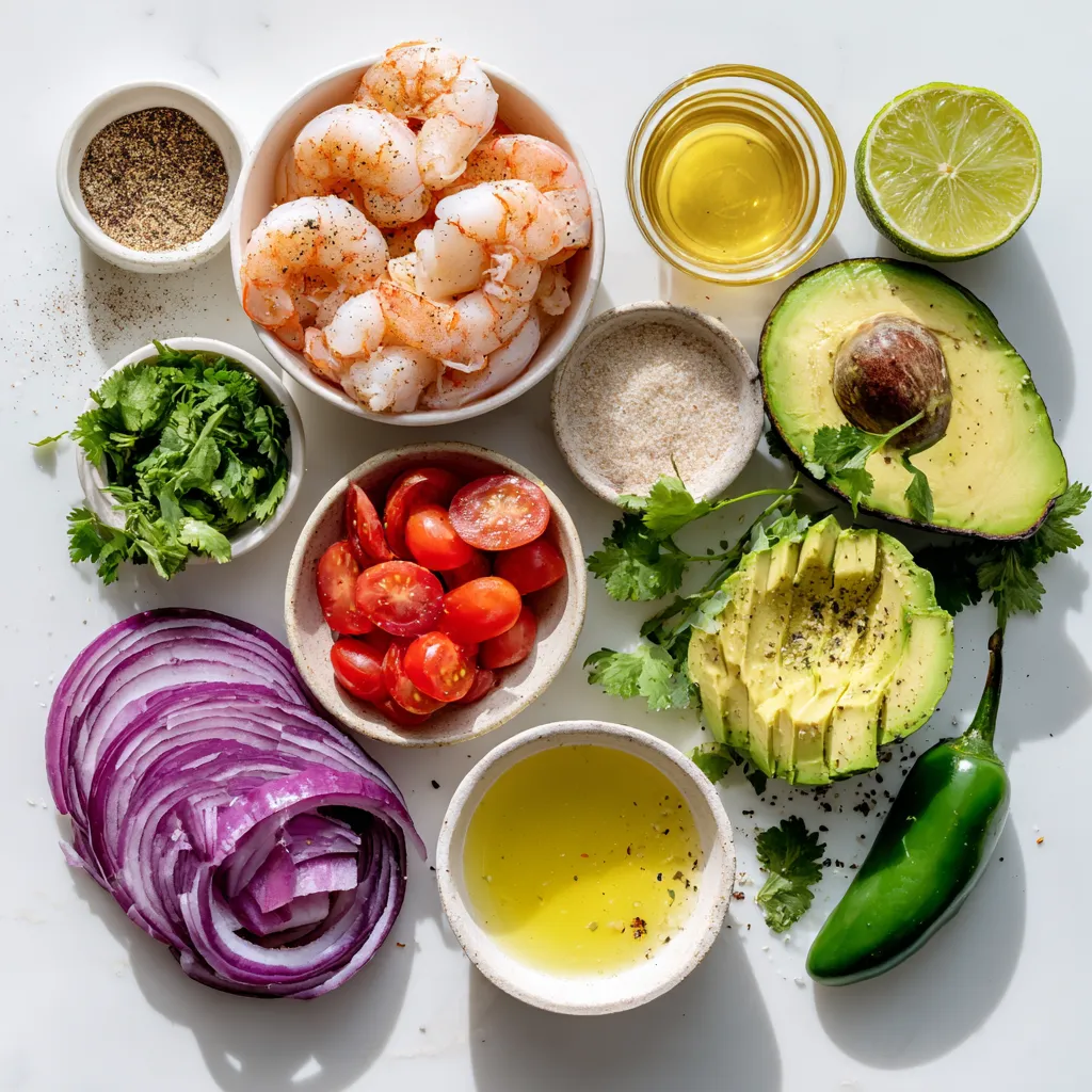 To make Shrimp Avocado Taco Boats, you need fresh and tasty ingredients. Shrimp forms the heart of this dish. Choose shrimp that is fresh and firm. The avocados serve as the perfect β€œboats” for your filling. Ripe avocados are creamy and add great flavor. Cherry tomatoes add a sweet burst, while red onion gives crunch and sharpness. A jalapeΓ±o brings heat, but you can adjust it based on your spice level. Fresh cilantro adds a pop of color and flavor. Lime juice brightens the whole dish. Seasonings like garlic powder and cumin enhance the shrimp’s taste. Don’t forget your salt and pepper for balance.