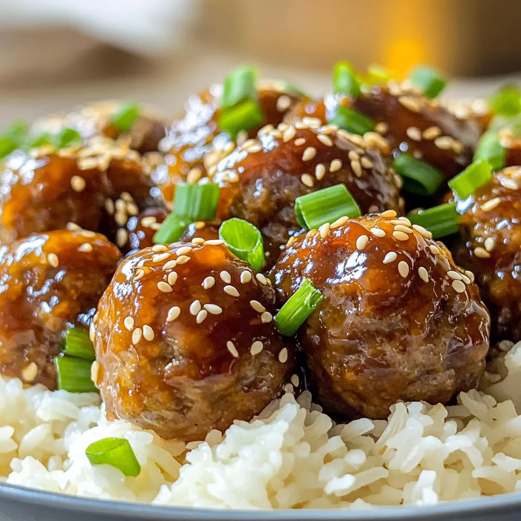 To make tasty honey garlic meatballs, you need a few key items: - 1 lb ground beef or turkey - 1/2 cup breadcrumbs - 1/4 cup grated Parmesan cheese - 1/4 cup fresh parsley, chopped - 1 large egg - 2 cloves garlic, minced - 1 teaspoon salt - 1/2 teaspoon black pepper These ingredients blend together to create meatballs that are both moist and flavorful. The ground meat is the base, while the breadcrumbs help bind the mixture. Parmesan cheese adds a nice depth of flavor, and parsley gives a pop of color and freshness. The sauce is what makes these meatballs shine. You will need: - 1 cup honey - 1/4 cup soy sauce (or tamari for gluten-free) - 1 tablespoon apple cider vinegar - 1 tablespoon cornstarch (optional, for thickening) The honey provides sweetness, while soy sauce adds a savory touch. Apple cider vinegar gives a tangy kick. If you want a thicker sauce, mix cornstarch with water before adding it to the sauce. Garnishes make your dish look pretty and add flavor. Consider using: - Sesame seeds - Green onions, sliced These toppings add a nice crunch and a fresh taste. You can sprinkle them on right before serving to make the dish pop. To start, grab a large mixing bowl. Add 1 pound of ground beef or turkey. Next, pour in 1/2 cup of breadcrumbs. Sprinkle in 1/4 cup of grated Parmesan cheese. Then, add 1/4 cup of chopped fresh parsley. Don’t forget the large egg and 2 cloves of minced garlic. Season with 1 teaspoon of salt and 1/2 teaspoon of black pepper. Mix everything together gently. You want it just combined; overmixing can make the meatballs tough. Now, take a small amount of the mixture and roll it into a ball. Aim for about 1 inch in diameter. Place your meatballs on a baking sheet as you form them. You should end up with about 20 to 24 meatballs. This step is fun and allows you to shape them just right. Once done, set them aside while you prepare the sauce. In a separate bowl, combine 1 cup of honey, 1/4 cup of soy sauce, and 1 tablespoon of apple cider vinegar. Whisk these together until smooth. If you prefer a thicker sauce, mix 1 tablespoon of cornstarch with 2 tablespoons of water, then add it to the honey mix. This will help the sauce stick better to the meatballs later. Place the meatballs in a single layer in the slow cooker. Carefully pour the honey garlic sauce over them. Make sure each meatball is well coated in the sauce. Set your slow cooker to low for 6 to 8 hours or high for 3 to 4 hours. When the meatballs are cooked through and tender, they’re ready to enjoy. Before serving, gently stir the meatballs to coat them again in the sauce. This adds more flavor and makes them shine. To get the best meatballs, don’t overmix your ingredients. Just mix until everything is combined. Use ground beef or turkey for good flavor. If you want a lighter meatball, try turkey. The breadcrumbs help keep the meatballs soft and moist. You can also add a touch of milk to the mix for extra moisture. The honey garlic sauce is key to this dish. To make it shine, use fresh garlic. Fresh garlic gives a stronger taste than powder. For the best flavor, let the meatballs soak in the sauce while cooking. If you like a bit of a kick, add red pepper flakes to the sauce. You can also use tamari instead of soy sauce for a gluten-free option. When using your slow cooker, layer your meatballs in a single row. This helps them cook evenly. Make sure to coat them well with the sauce. If you want thicker sauce, add cornstarch mixed with water. Cook on low for 6-8 hours for tender meatballs or on high for 3-4 hours. Always check that your meatballs are cooked through before serving. {{image_2}} You can use different meats for your meatballs. Ground turkey is a great choice if you want a leaner option. Chicken also works well and gives a nice taste. For a richer flavor, use ground beef. Each meat gives a unique flavor to the dish. Make sure to adjust cooking times slightly based on the meat you choose. To make this recipe gluten-free, swap regular breadcrumbs for gluten-free breadcrumbs. You can also use tamari instead of soy sauce. Tamari is a great option that has a similar taste without gluten. These easy changes keep the meal tasty while meeting gluten-free needs. You can change the flavors of the honey garlic meatballs to suit your taste. Add a teaspoon of red pepper flakes for heat. If you love citrus, mix in some orange juice or zest for brightness. For a more Asian twist, add ginger and sesame oil to the sauce. Experiment with different herbs too, like cilantro or basil, to find your perfect flavor blend. To keep your honey garlic meatballs fresh, store them in an airtight container. Make sure to let them cool before sealing. This helps avoid moisture build-up. Place them in the fridge if you plan to eat them within a few days. They should stay good for about 3 to 4 days. When you're ready to enjoy your leftovers, you can reheat them simply. You can use the microwave or the stove. For the microwave, heat the meatballs in a bowl. Make sure to cover them to keep moisture in. Heat for about 1 to 2 minutes. If using the stove, warm them in a pan over low heat. Add a splash of water or extra sauce to keep them moist. Stir gently until heated through. If you want to store your meatballs for a longer time, freezing is a great option. First, let the meatballs cool completely. Then, place them in a single layer on a baking sheet. Freeze them for about 1 to 2 hours until firm. Once frozen, transfer the meatballs to a freezer bag. This helps save space and keeps them fresh. You can freeze them for up to 3 months. When ready to use, thaw them in the fridge overnight before reheating. Yes, you can use frozen meatballs. Just add them to the slow cooker without thawing. The cooking time will stay the same. The sauce will still soak in well. This option saves time and effort. Frozen meatballs can be just as tasty! To check if the meatballs are done, use a meat thermometer. The internal temperature should reach