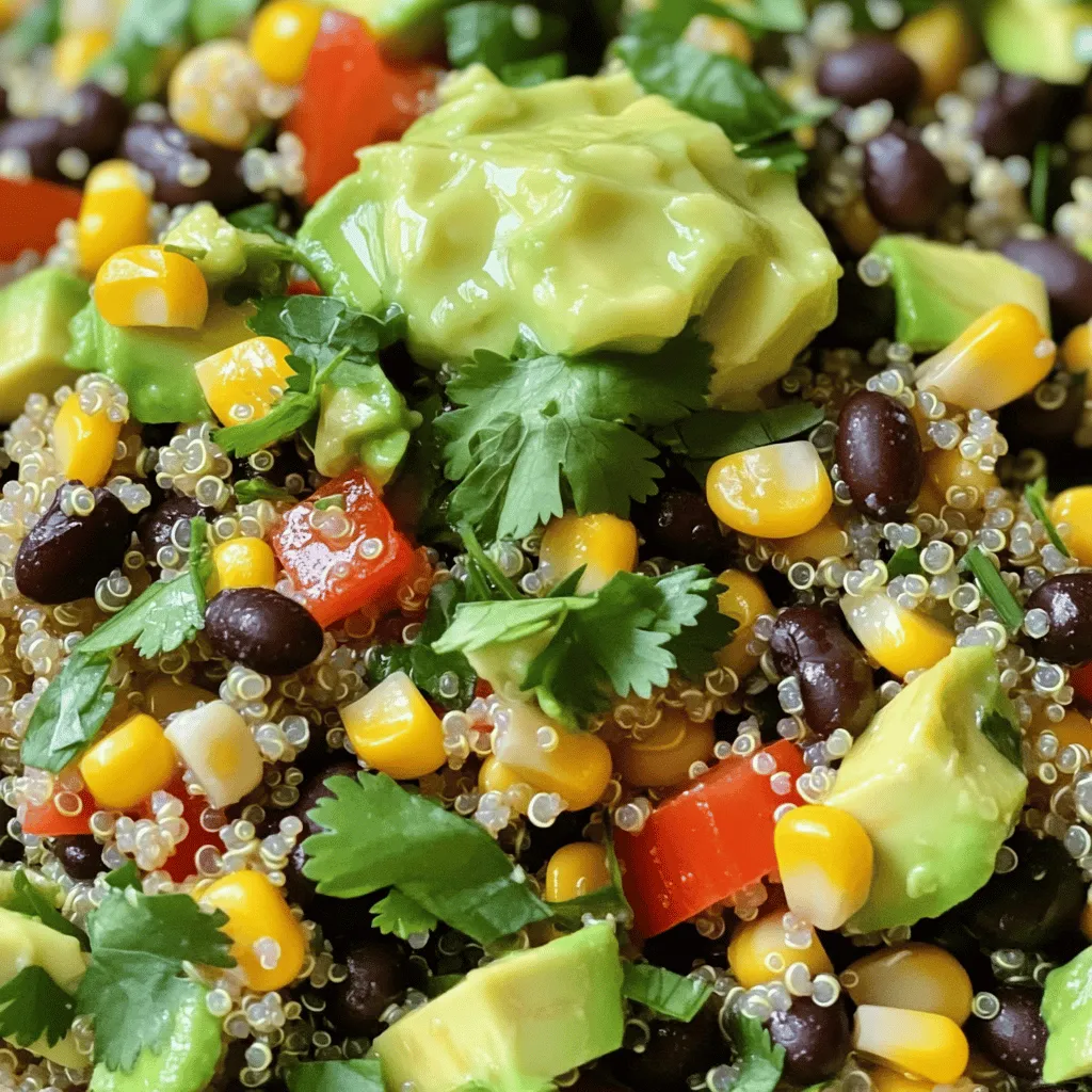 To make the Southwest Black Bean Quinoa Salad, you will need: - 1 cup quinoa, rinsed - 2 cups vegetable broth or water - 1 can (15 oz) black beans, drained and rinsed - 1 cup corn (fresh or frozen) - 1 red bell pepper, diced - 1 small red onion, finely chopped - 1 avocado, diced - 1/4 cup fresh cilantro, chopped - Juice of 2 limes - 2 tablespoons olive oil - 1 teaspoon cumin - 1 teaspoon chili powder - Salt and pepper to taste This salad serves four people and packs a nutritional punch. Each serving contains: - Calories: 290 - Protein: 10g - Carbohydrates: 45g - Dietary Fiber: 12g - Fat: 10g - Sugars: 2g Quinoa adds a great source of protein and fiber. Black beans offer even more fiber and protein. The fresh veggies give vitamins and minerals. This salad is filling and healthy! You can easily swap some ingredients to fit your needs: - For a gluten-free option, ensure your vegetable broth is certified gluten-free. - Use lime juice instead of lemon juice for a different flavor. - If you have a bean allergy, use chickpeas or cooked chicken instead. - Try using any other veggies you enjoy, like cucumber or tomatoes. This salad is versatile and great for different diets! To cook quinoa, start with a medium pot. Bring 2 cups of vegetable broth or water to a boil. Add 1 cup of rinsed quinoa to the pot. Lower the heat to low and cover the pot. Let it simmer for about 15 minutes. You want all the liquid to absorb. After 15 minutes, remove the pot from heat. Let it sit for 5 minutes. Then, fluff the quinoa with a fork. This step makes the quinoa light and airy. While the quinoa cooks, you can make the dressing. Grab a small bowl and whisk together the juice of 2 limes, 2 tablespoons of olive oil, 1 teaspoon of cumin, and 1 teaspoon of chili powder. Add salt and pepper to taste. Whisk until everything blends well. This dressing adds a zesty kick to your salad. Now it’s time to mix everything. In a large bowl, combine 1 can of black beans, 1 cup of corn, 1 diced red bell pepper, and 1 finely chopped red onion. Add the diced avocado for creaminess. Once the quinoa is ready, add it to the bowl. Pour the dressing over the salad and gently toss everything together. This helps coat all the ingredients evenly. Finally, fold in 1/4 cup of chopped fresh cilantro. Adjust the seasoning with more salt and pepper if needed. Enjoy your colorful and tasty Southwest Black Bean Quinoa Salad! To cook quinoa well, start with rinsing it. Rinsing removes bitter saponins. Use a pot and add two cups of vegetable broth or water for every cup of quinoa. Bring the liquid to a boil, then add the rinsed quinoa. Lower the heat and cover the pot. Let it simmer for about 15 minutes. After all the liquid is gone, take it off the heat. Let it sit for five minutes, then fluff with a fork. This method gives you light, fluffy quinoa. To boost the flavor of your salad, use fresh lime juice. It adds a zesty kick. Try adding extra spices like smoked paprika or cayenne for heat. You can also mix in some diced jalapeños. Fresh herbs like cilantro or parsley enhance the taste, too. For a creamier texture, add more avocado. A sprinkle of feta cheese can give a salty bite. Experiment to find what you love! This Southwest Black Bean Quinoa Salad is great for meal prep. You can make a big batch and store it in the fridge. It stays fresh for up to three days. Just keep the dressing separate until you are ready to eat. This keeps everything crunchy. You can also pack it in lunch containers for work or school. It’s a filling and healthy option to grab on the go! {{image_2}} You can add protein to make this salad heartier. Try diced chicken, shrimp, or tofu. Each option adds a unique taste and texture. Grilled chicken brings a smoky flavor. Shrimp adds a sweet touch. Tofu is great for a plant-based option. You can also mix in cooked quinoa for extra protein. Experiment to find your favorite! Feel free to change the veggies based on what you like. Instead of red bell pepper, try yellow or green peppers. You can also add diced cucumbers for crunch or cherry tomatoes for sweetness. Zucchini works well, too. Just chop them up and mix them in. This salad is very flexible! The dressing is key to this salad's flavor. If you want a new twist, try a honey-lime vinaigrette. Just mix honey, lime juice, and olive oil. You could also use a tahini dressing for a creamy texture. For a spicy kick, add some hot sauce or diced jalapeños. These changes keep the salad exciting! Store leftovers in an airtight container. Keep the salad in the fridge. It stays fresh for up to 3 days. The flavors will deepen as it sits. Just stir before serving for the best taste. You can freeze this salad, but it’s best to avoid freezing the avocado. Pack the quinoa and other ingredients in a freezer-safe bag. Remove as much air as possible. This salad can last for up to 3 months in the freezer. Thaw it in the fridge overnight before eating. Reheat the quinoa salad in the microwave for a quick meal. Use a microwave-safe bowl and cover it. Heat on low for 1-2 minutes. Stir halfway through to ensure even heating. If cold, enjoy it as a refreshing salad. Yes, you can make this salad ahead of time. This salad tastes better after it sits. The flavors mix and create a tasty dish. Prepare it a few hours before serving or even the night before. Just keep it in the fridge. If you make it too early, the avocado may brown. To avoid this, add the avocado just before serving. Yes, quinoa is a great source of protein. It is a complete protein, which means it has all nine essential amino acids. This makes it a smart choice for vegans and vegetarians. One cup of cooked quinoa has around 8 grams of protein. It is also high in fiber and other nutrients. This makes quinoa a healthy addition to any meal. You can make this salad spicier in a few ways. First, add more chili powder to the dressing. Start with one more teaspoon and taste it. You can also mix in diced jalapeños or a splash of hot sauce