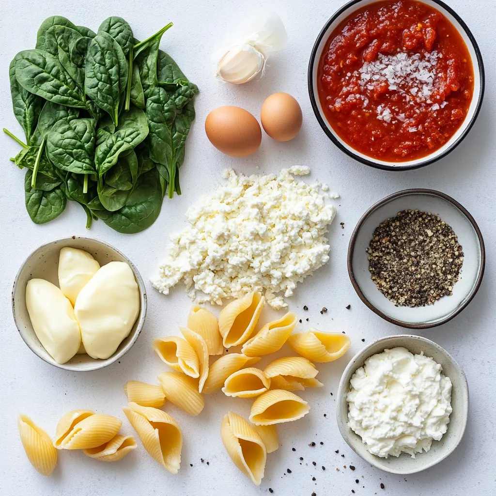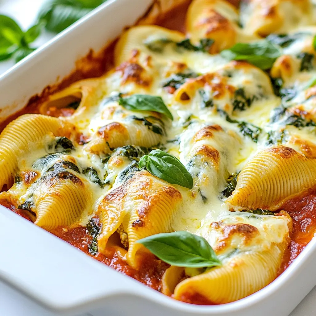 Each ingredient plays a key role in the flavor and texture of the dish. The jumbo pasta shells serve as a perfect pocket for the creamy spinach and cheese filling. Fresh spinach adds vibrancy and nutrients. Ricotta cheese provides a rich base, while mozzarella and Parmesan bring that lovely cheesy goodness. The egg helps bind everything together, giving the filling a smooth texture. Garlic and Italian seasoning enhance the overall flavor. Marinara sauce adds moisture and zest.