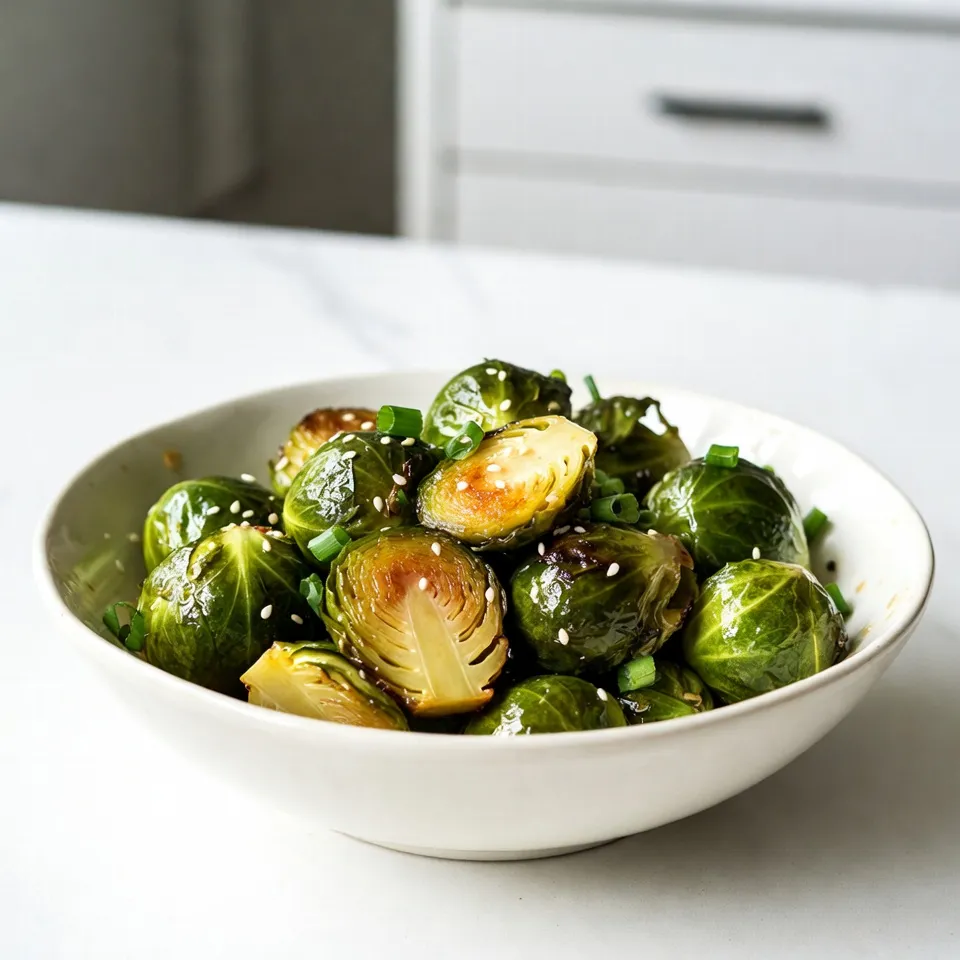To make Sriracha honey glazed Brussels sprouts, you need these basic ingredients: - 1 lb Brussels sprouts, halved - 3 tablespoons olive oil - 2 tablespoons honey - 1-2 tablespoons Sriracha (adjust for spice level) - 1 teaspoon garlic powder - 1/2 teaspoon salt - 1/4 teaspoon black pepper - 2 tablespoons sesame seeds (optional) - 2 green onions, chopped (for garnish) You can add a few extra ingredients to boost flavor. Consider using: - Crushed red pepper flakes for more heat - Lemon juice for a fresh zing - Soy sauce for a savory twist - Bacon bits for extra crunch These choices can give your dish a unique touch. For the best results, choose fresh Brussels sprouts. Look for firm and bright green sprouts. Avoid those with yellow or wilted leaves. The smaller sprouts are often sweeter. They also cook evenly. If you can, buy organic sprouts. They tend to have better flavor. {{ingredient_image_1}} Start by washing the Brussels sprouts. Cut off the ends and slice them in half. This helps them cook evenly and get crispy. You should have about 1 pound of sprouts. Place them in a large mixing bowl. This is where the magic begins. In the same bowl, add 3 tablespoons of olive oil. Then, add 2 tablespoons of honey for sweetness. Next, pour in 1 to 2 tablespoons of Sriracha. This gives your sprouts that nice kick. Add 1 teaspoon of garlic powder, 1/2 teaspoon of salt, and 1/4 teaspoon of black pepper. Mix everything well. You want each sprout coated in that tasty sauce. Preheat your oven to 400°F (200°C). Spread the coated Brussels sprouts on a baking sheet lined with parchment paper. Make sure they are in a single layer. This helps them roast evenly. Roast them for 20 to 25 minutes. Toss them halfway through for even cooking. They should turn golden brown and tender. If you want, sprinkle 2 tablespoons of sesame seeds on top in the last 5 minutes. Finally, remove them from the oven and garnish with chopped green onions. Serve hot and enjoy your delicious side! To get the best glaze on your Brussels sprouts, use fresh vegetables. Look for bright green sprouts without blemishes. Halve them for even cooking and more surface area for the glaze. Coat them well with olive oil, honey, and Sriracha in a big bowl. Make sure every sprout gets covered. Spread them out on a baking sheet in a single layer. This way, they roast evenly and get that nice caramelized look. You can easily adjust the spice in your glaze. Start with one tablespoon of Sriracha for a milder taste. If you like it hot, add more, up to two tablespoons. Mix it in and taste. This lets you control the heat. Remember, you can always add more spice, but you can't take it out! Serve these Brussels sprouts as a side dish with grilled chicken or fish. They also pair well with rice or quinoa. For added crunch and flavor, sprinkle toasted sesame seeds on top. Garnish with chopped green onions right before serving. This adds color and freshness to your dish. Enjoy your tasty creation! Pro Tips Adjust Spice Level: Feel free to modify the amount of Sriracha to suit your taste. Start with 1 tablespoon for a milder flavor and increase as desired. Even Roasting: To ensure even cooking, make sure the Brussels sprouts are spaced out on the baking sheet. Overcrowding can lead to steaming instead of roasting. Storage Tips: Leftover Brussels sprouts can be stored in an airtight container in the refrigerator for up to 3 days. Reheat in the oven for the best texture. Garnish for Freshness: Adding green onions as a garnish not only enhances the visual appeal but also adds a fresh, crunchy texture that complements the dish. {{image_2}} You can swap honey for other sweeteners. Maple syrup gives a nice flavor. Agave nectar works well too. If you want a low-carb option, try erythritol or stevia. Each sweetener will change the taste slightly, so choose what you like best. You don’t have to stick to just Brussels sprouts. Broccoli or cauliflower add great texture. Carrots bring a sweet crunch. Just remember to cut them into similar sizes. This way, they cook evenly with the sprouts. To make this dish vegan, replace honey with maple syrup or agave. The flavor will remain sweet and tasty. This small change keeps the dish plant-based while still being delicious. To keep your leftover Sriracha honey glazed Brussels sprouts fresh, let them cool first. Place them in an airtight container. Store them in the fridge. They stay good for about 3 to 4 days. If you want to keep them longer, freezing is a great option. When you’re ready to enjoy them again, the best way to reheat is in the oven. Preheat your oven to 350°F (175°C). Spread the Brussels sprouts on a baking sheet. Heat for about 10-15 minutes, until they are warm and crisp again. This method helps to maintain their flavor and texture. You can also use a microwave, but they may become a bit soggy. Freezing Brussels sprouts works well if you want to save them longer. First, cool them completely. Then, place them in a freezer-safe bag or container. They can last for about 2-3 months in the freezer. To thaw, place them in the fridge overnight. Reheat them in the oven for the best taste. Yes, you can prepare the Brussels sprouts ahead. Toss them with the glaze and store them in the fridge. This keeps them fresh for up to 24 hours. When ready to cook, just spread them on a baking sheet and roast. This saves time and makes dinner easy. These Brussels sprouts pair well with many dishes. You can serve them with grilled chicken or salmon for protein. They also go great with rice or quinoa for a hearty meal. Try them alongside a fresh salad or roasted sweet potatoes, too. To tone down the heat, use less Sriracha. Start with just one tablespoon. You can also mix in more honey to balance the spice. Adding a dollop of yogurt or sour cream as a topping helps cool it down, too. This way, you enjoy the flavor without too much heat. In this blog post, I covered how to make Sriracha Honey Glazed Brussels Sprouts. We explored key i