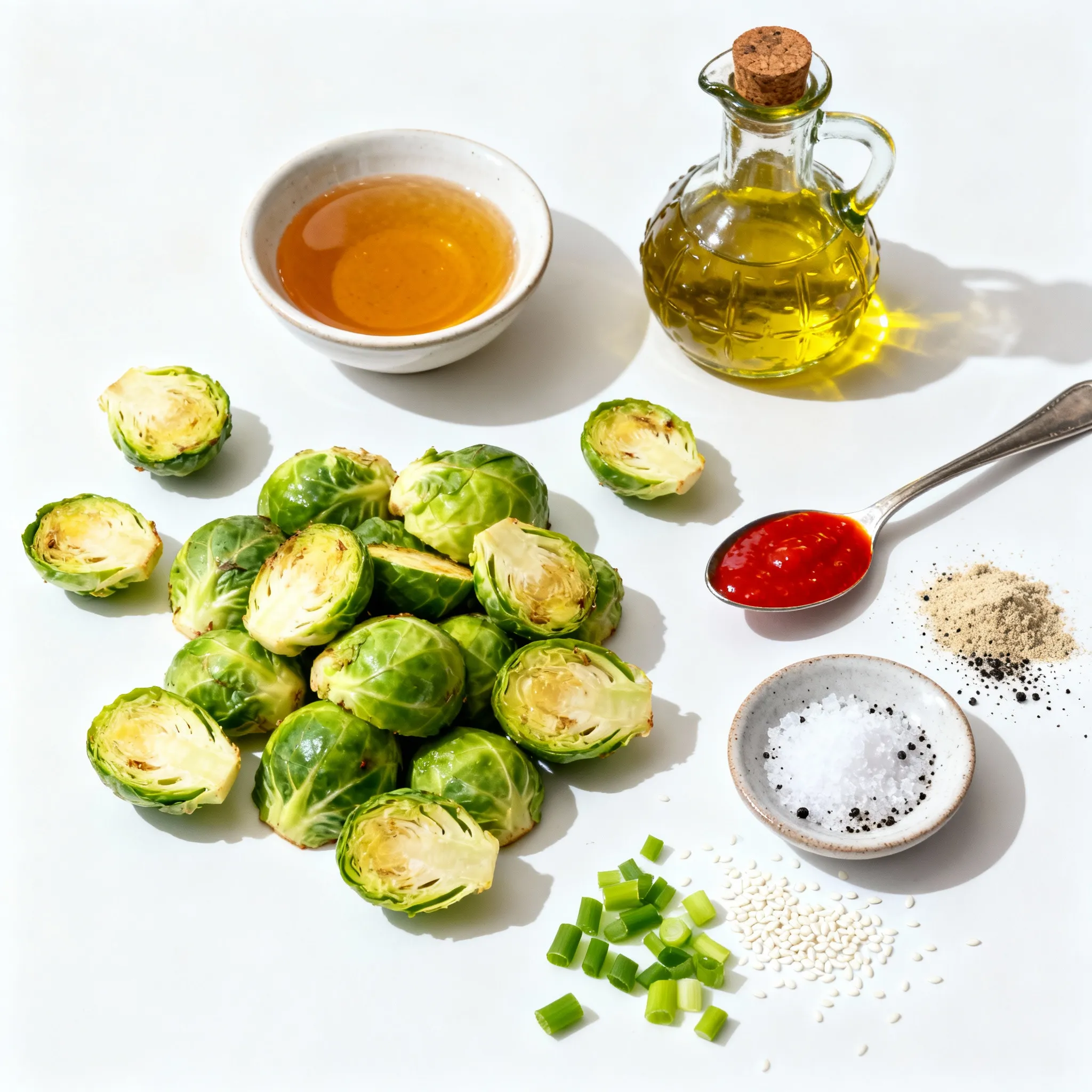 To make Sriracha honey glazed Brussels sprouts, you need these basic ingredients: