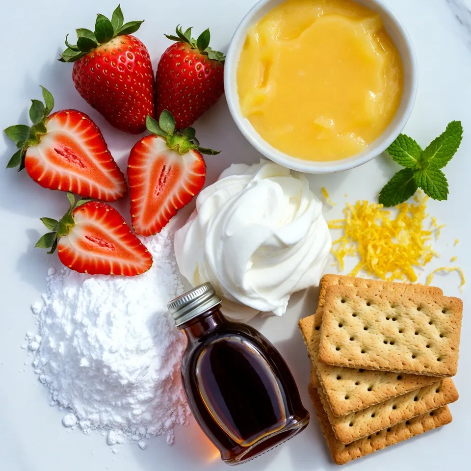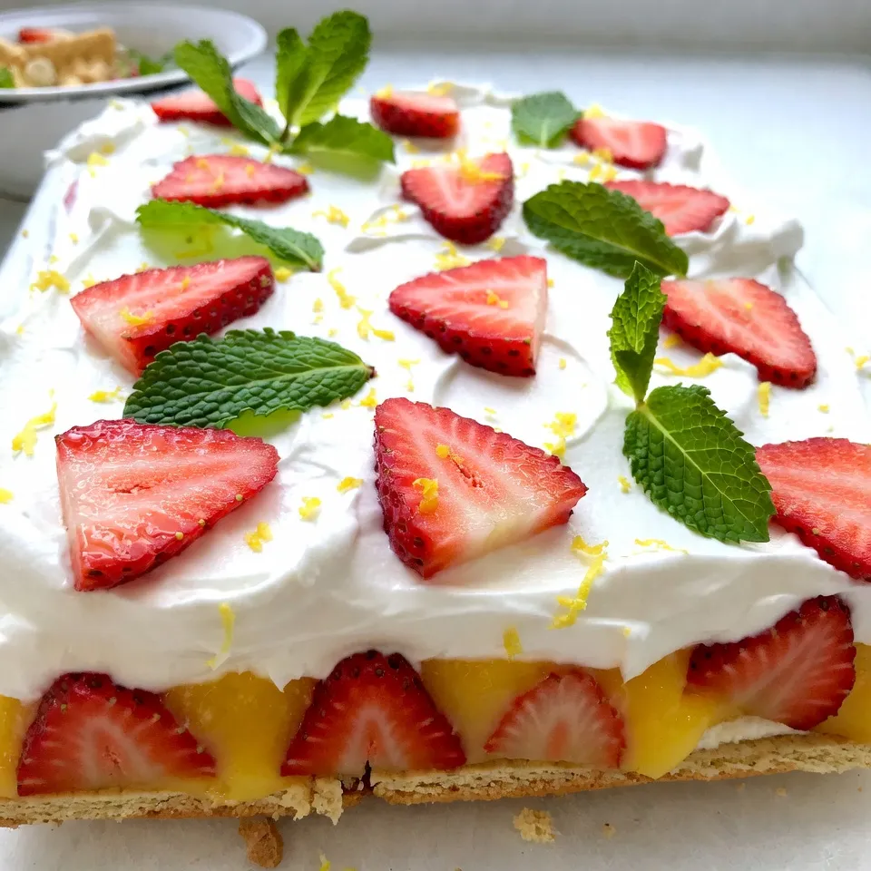 A refreshing and creamy dessert layered with strawberries, lemon curd, and whipped cream, perfect for warm weather.