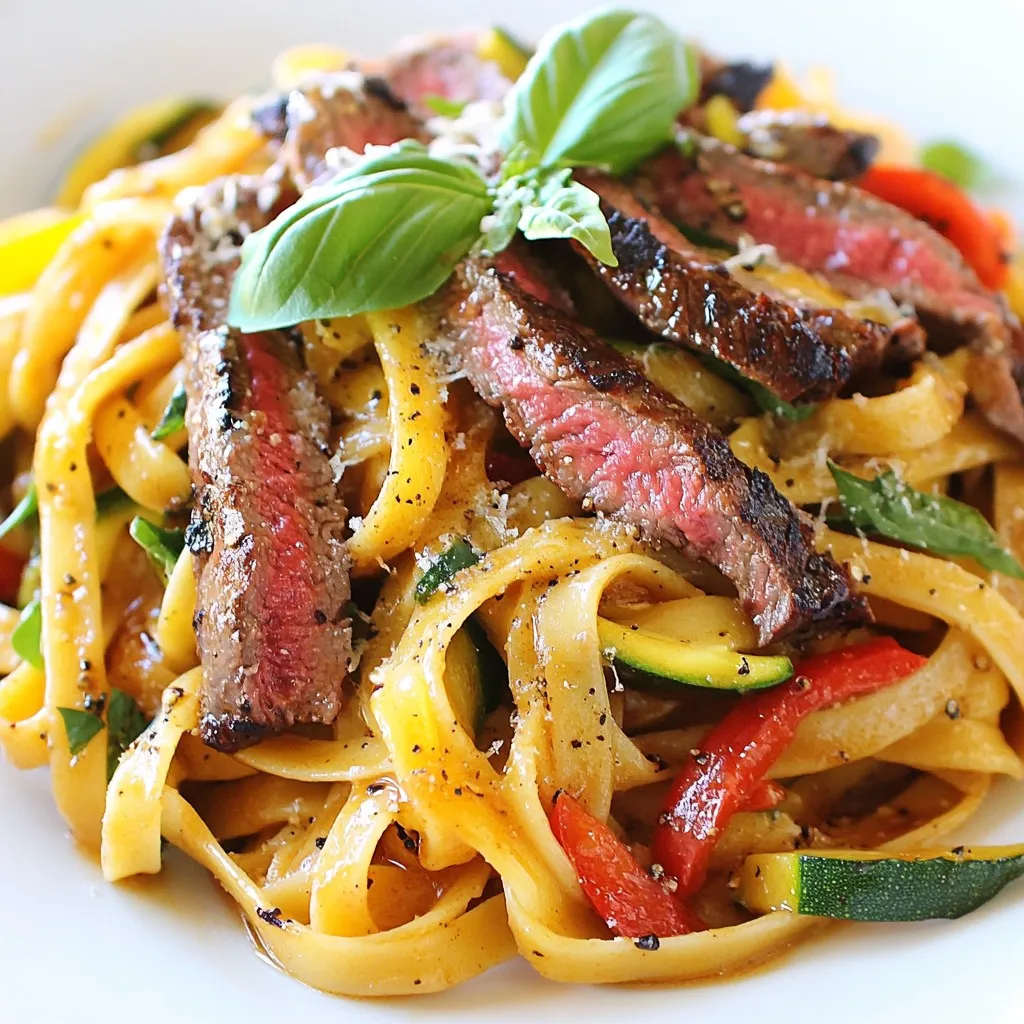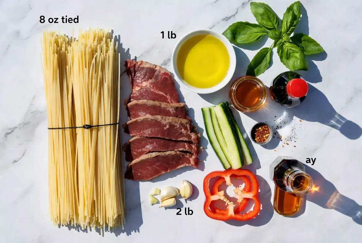 The main ingredients form the backbone of this dish. Fettuccine or spaghetti serves as the pasta base. I love using flank steak for its rich flavor and tenderness. Olive oil adds a nice touch of fat, which helps in cooking the steak and veggies.