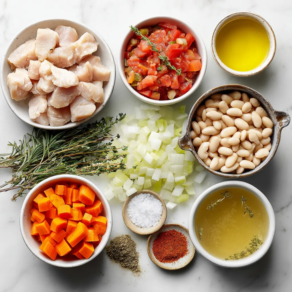 The main ingredients create a rich and hearty stew. Chicken thighs give great flavor and stay moist. White beans add creaminess and protein. Aromatic veggies like onion, garlic, carrots, and celery give a lovely base. Diced tomatoes and chicken broth tie it all together.