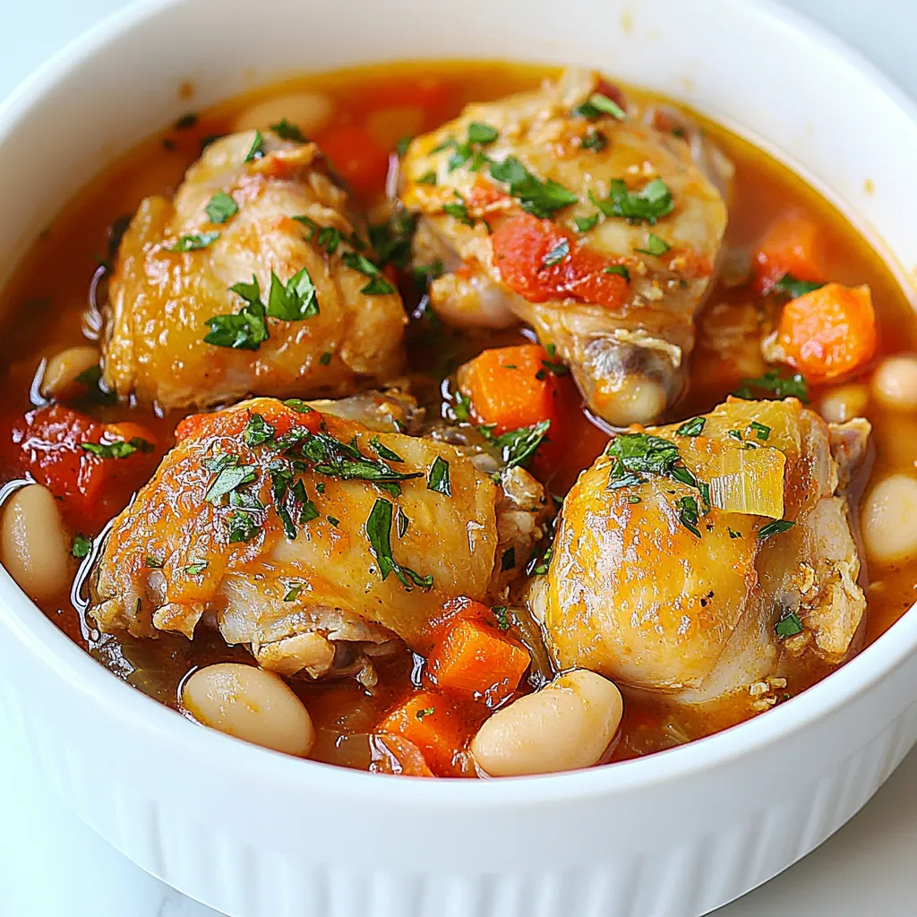 A hearty and flavorful stew featuring chicken, white beans, and aromatic herbs.